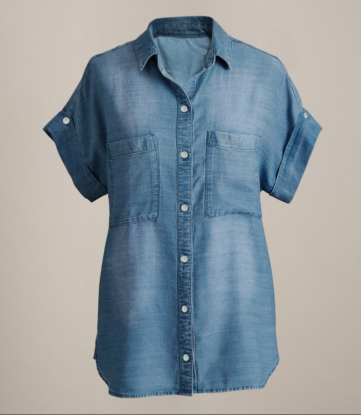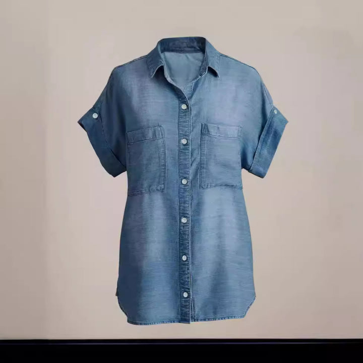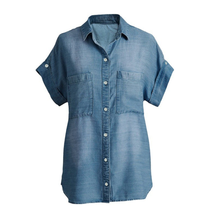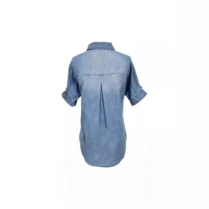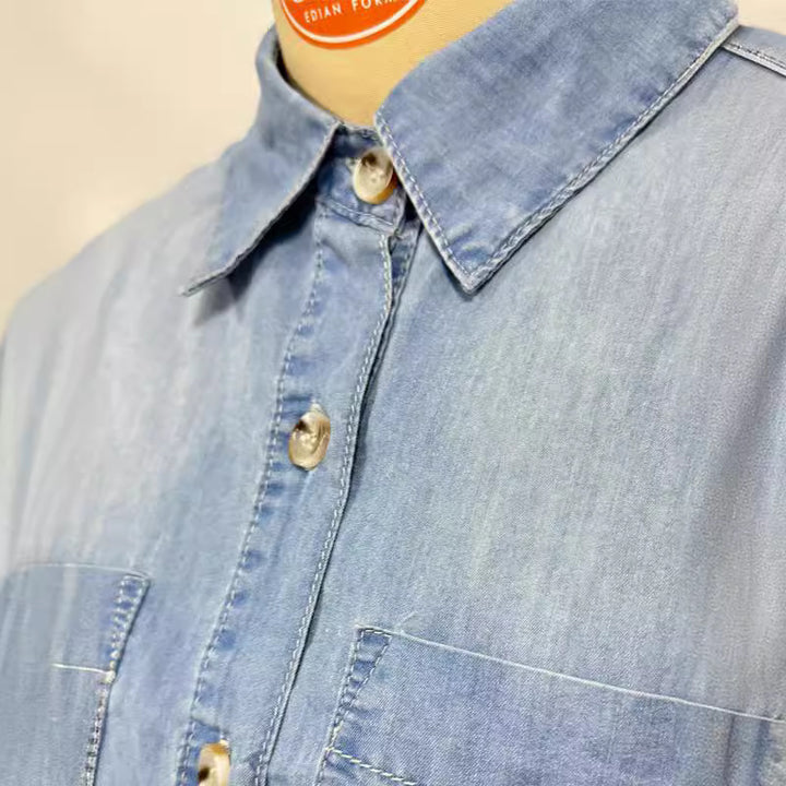 European and American supply fashionable new lapel pocket single-breasted multi-button denim shirt