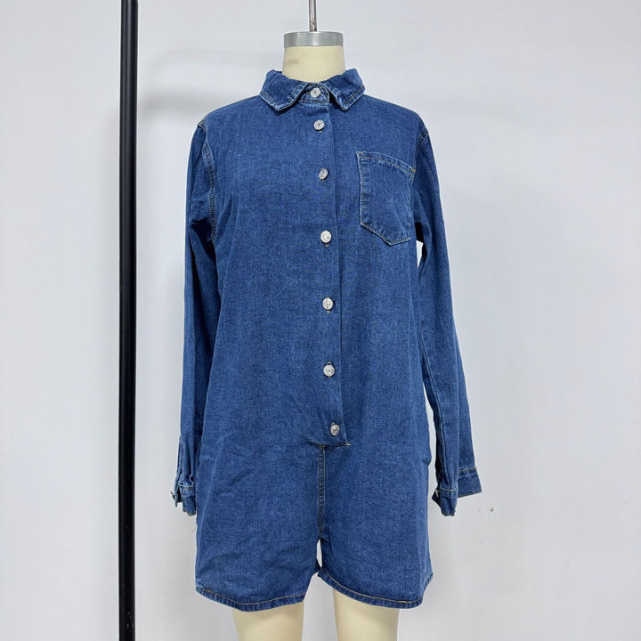 European and American supply, fashionable retro Spice Girl large size loose lapel button-down denim shirt, thickened coat cow