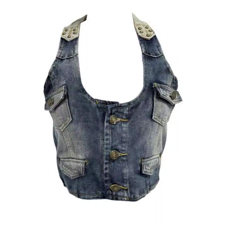 European and American supply, fashionable women retro and old sexy babes denim vest