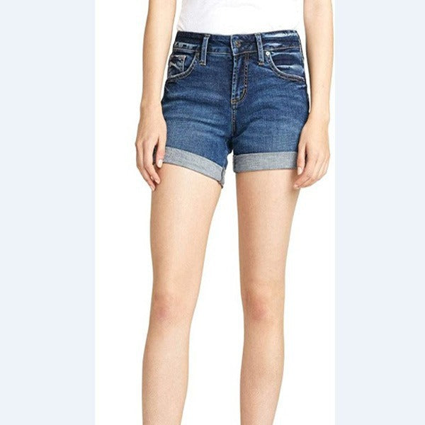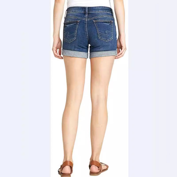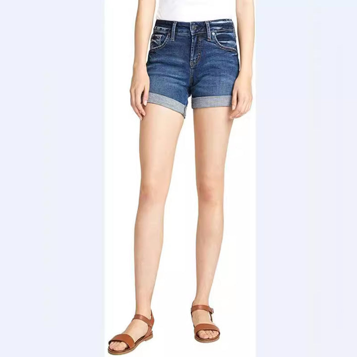 European and American supply, summer women's clothing casual straight hemming retro blue denim shorts shorts