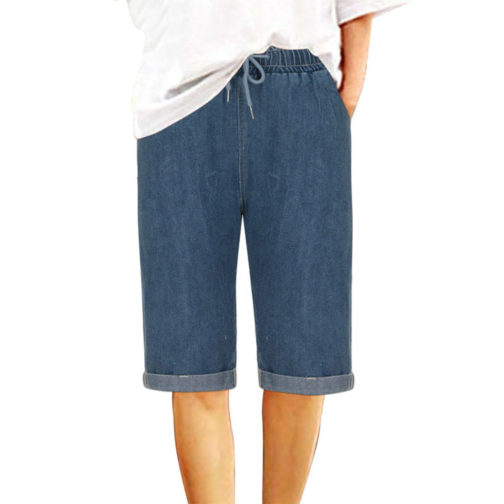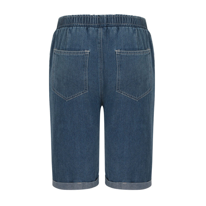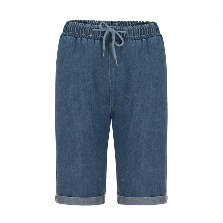 European and American supply women's clothing loose straight elastic waist drawstring five-point pants denim shorts