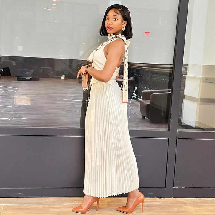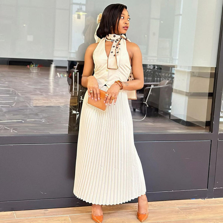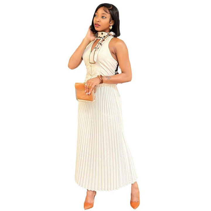 European and American women's clothing 2024 summer new fashion neck vest sleeveless top plea...