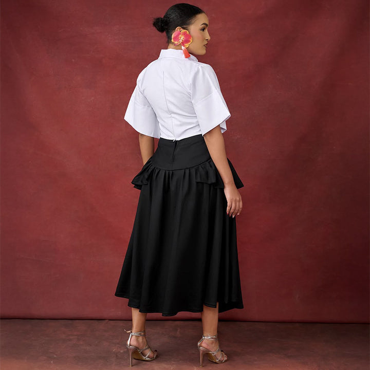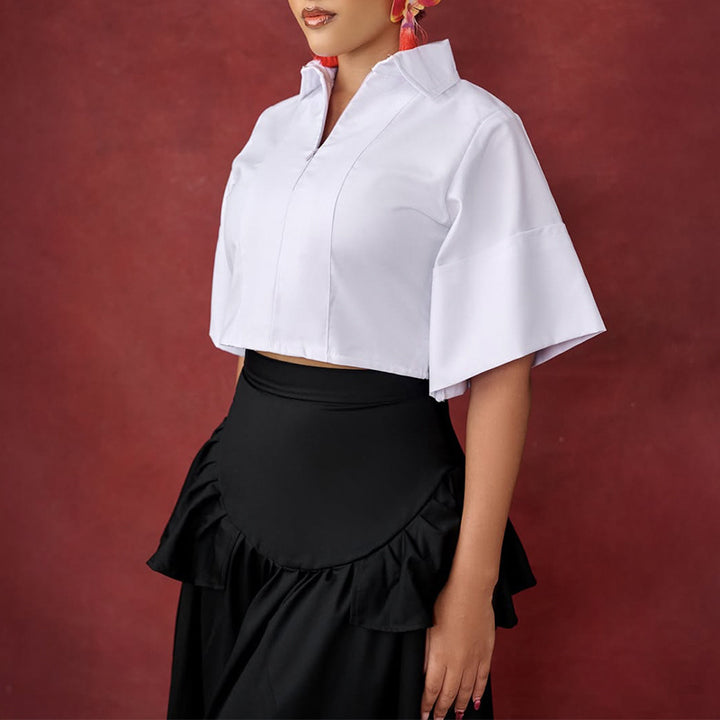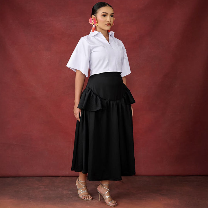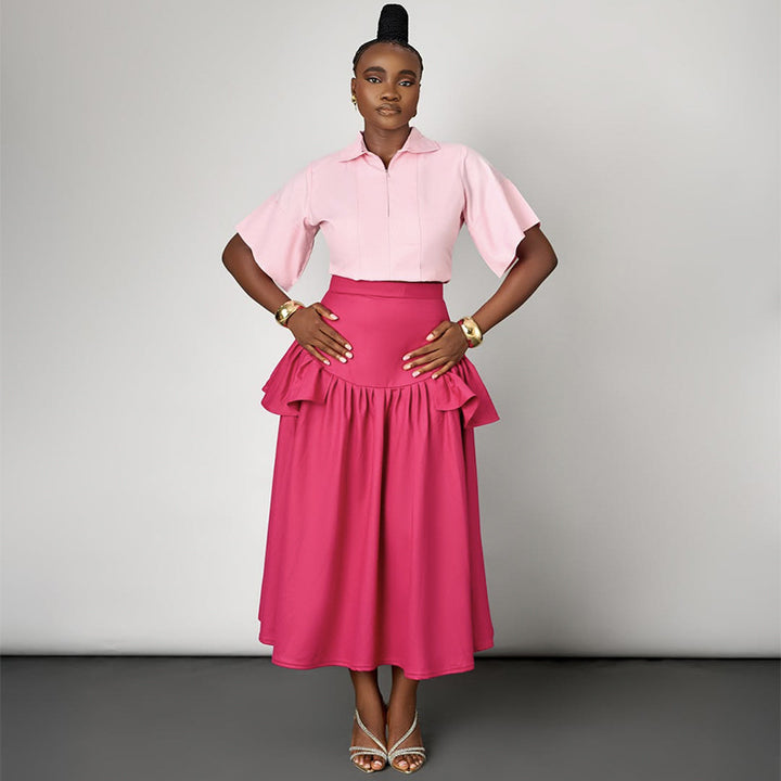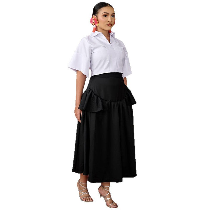 European and American women's clothing 2025 autumn new fashion five-quarter sleeve short shirt ruffle edge skirt set