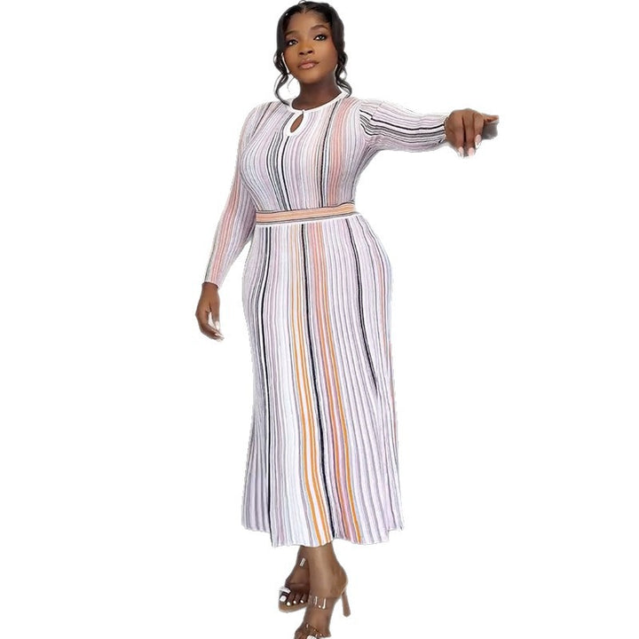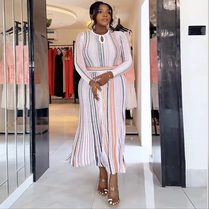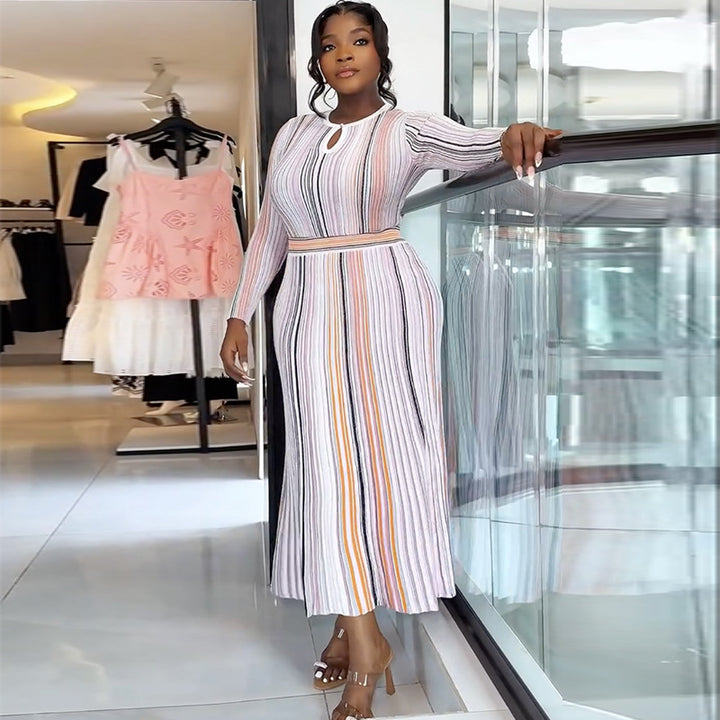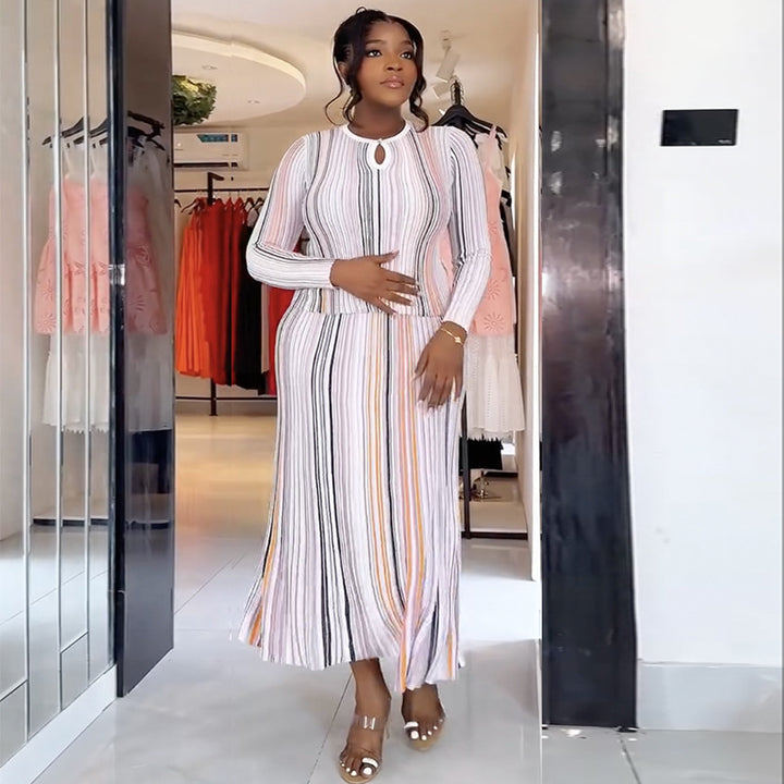 European and American women's clothing 2025 autumn new fashion temperament elegant striped slim and thin pleated skirt set