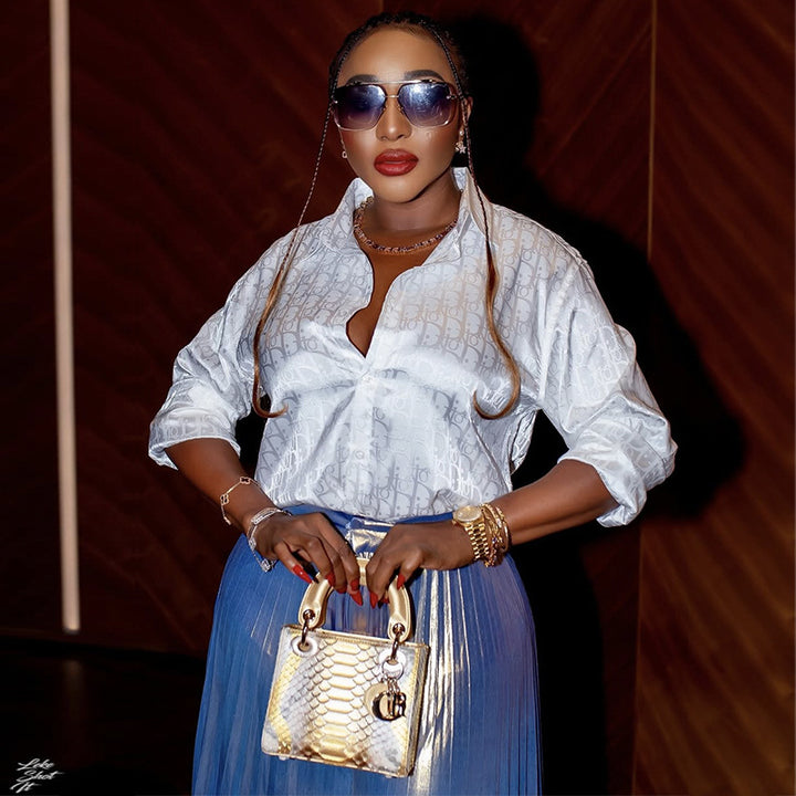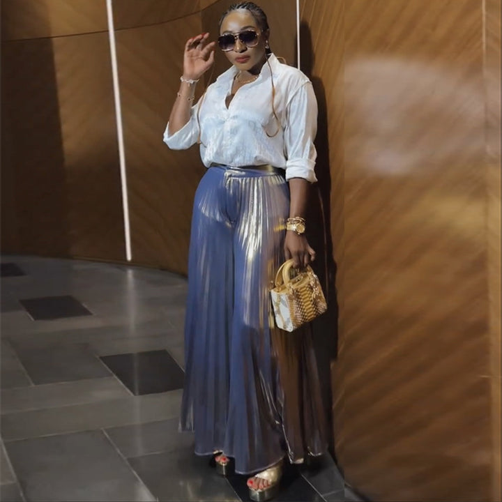 European and American women's clothing 2025 autumn new fashion temperament thin printed shirt pleated skirt set