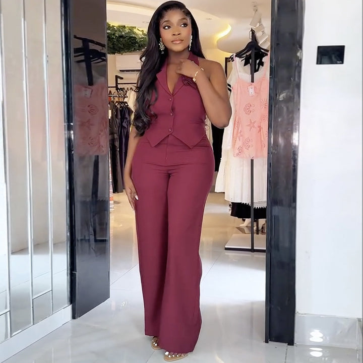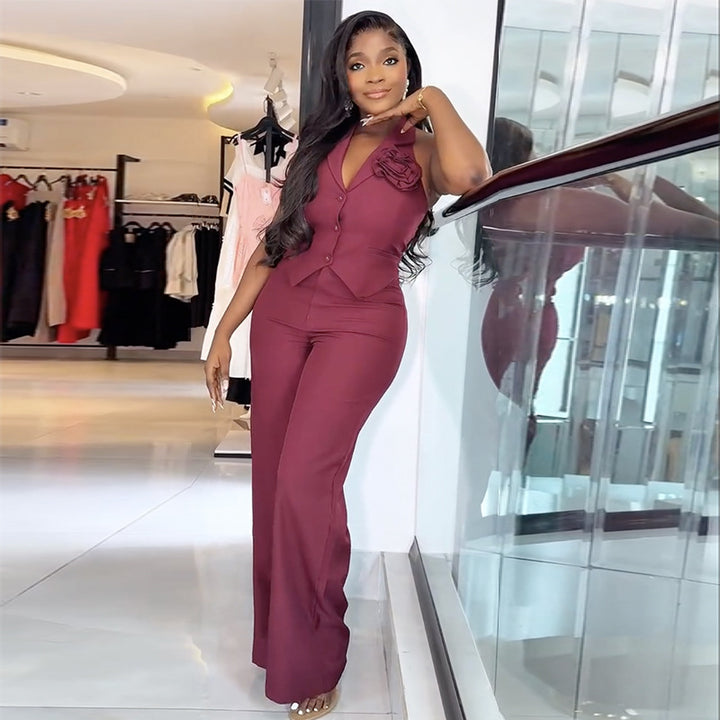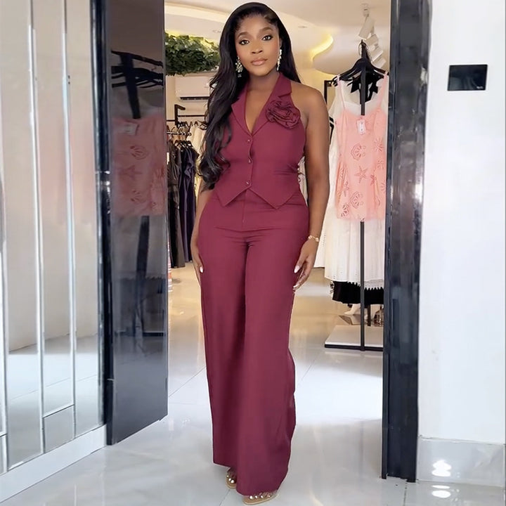 European and American women's clothing 2025 autumn new fashion temperament three-dimensional flower waist vest wide-leg pants set