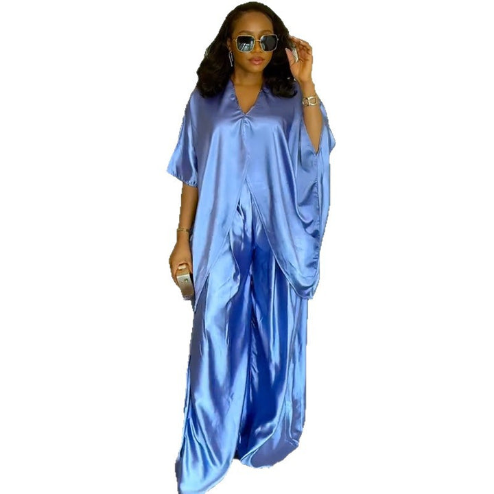 European and American women's clothing 2025 autumn new fashion V-neck five-quarter sleeve loose and thin top wide-leg pants set