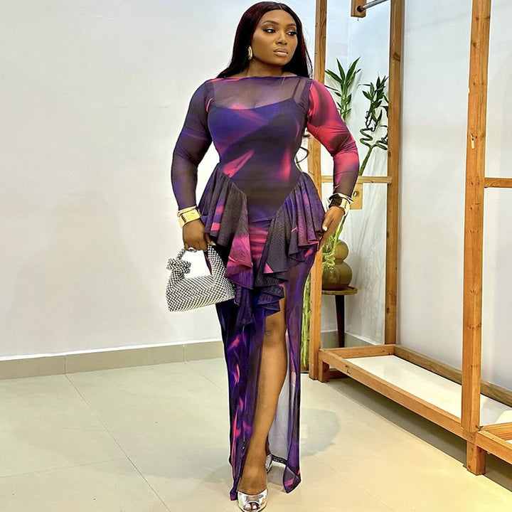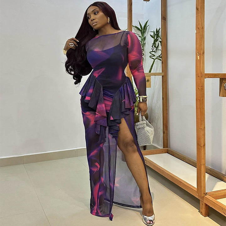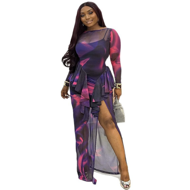 European and American women's clothing 2025 autumn new fashionable and sexy mesh yarn waist ...