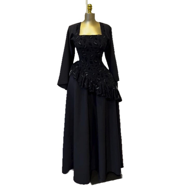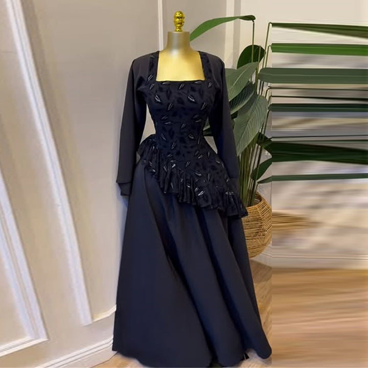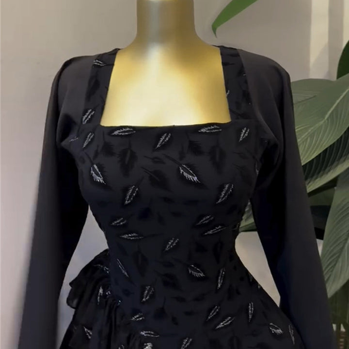 European and American women's clothing 2025 autumn new square collar long-sleeved asymmetrical hem shirt high waist A-shaped skirt set