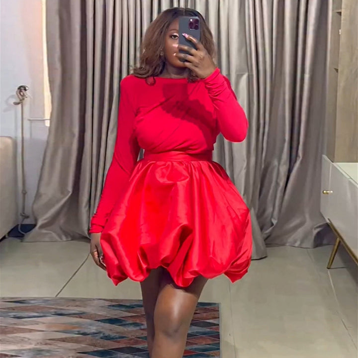 European and American women's clothing 2025 autumn new temperament design long-sleeved T-shirt high-waisted bud skirt set