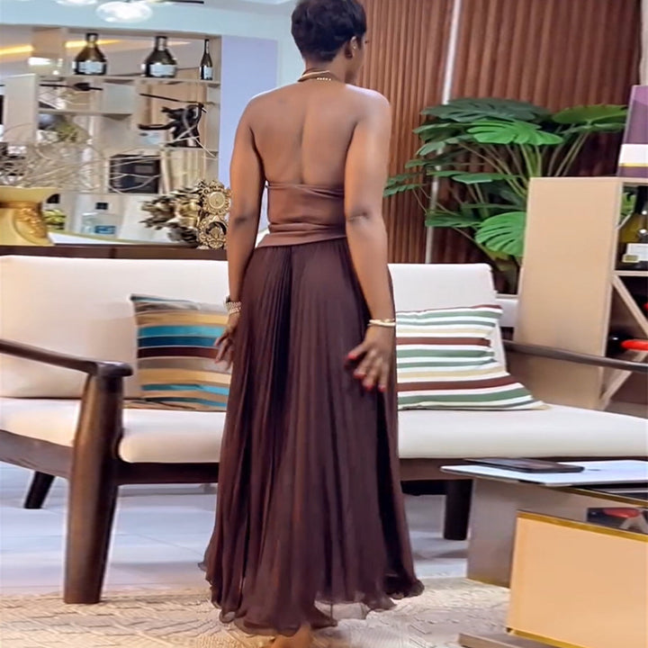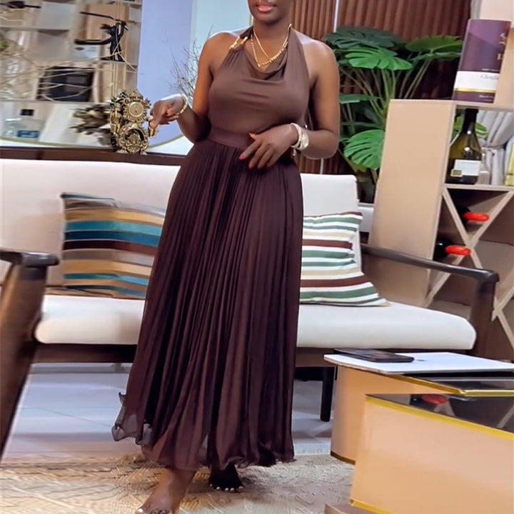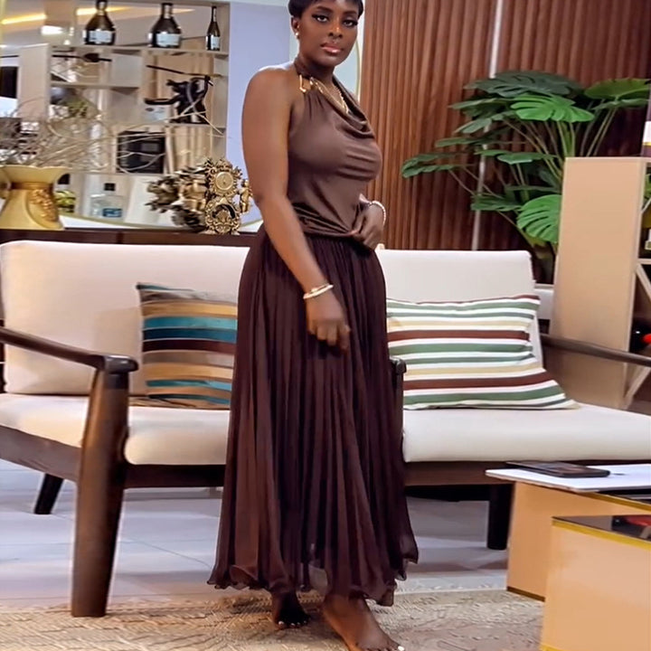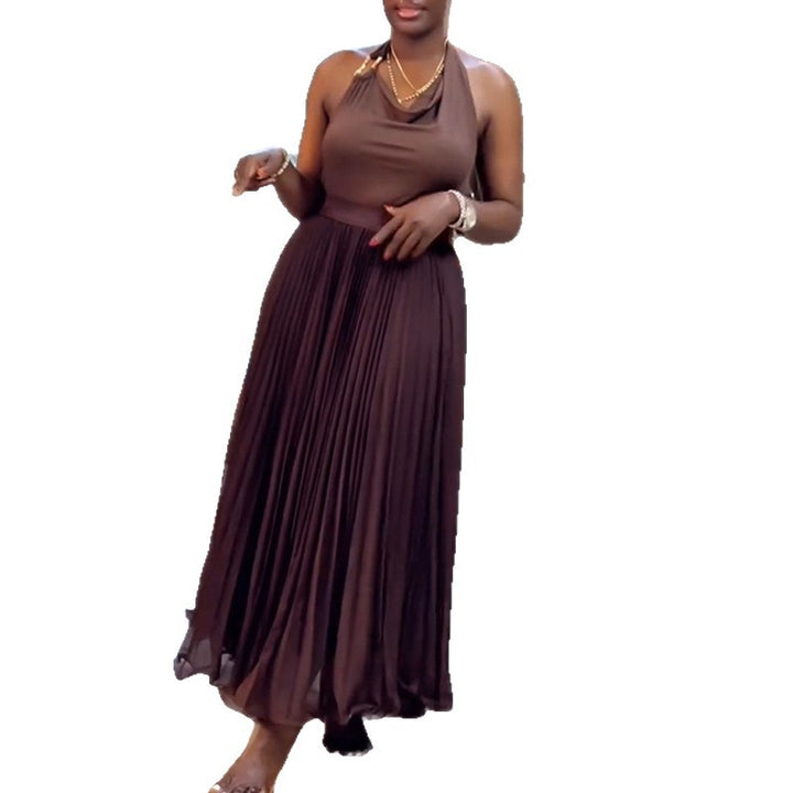 European and American women's clothing 2025 autumn new temperament neck slim vest top pleated skirt set