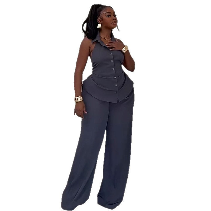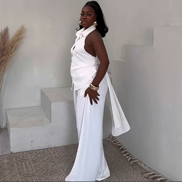 European and American women's clothing 2025 summer new fashion backless bow sleeveless top wide-leg trousers set