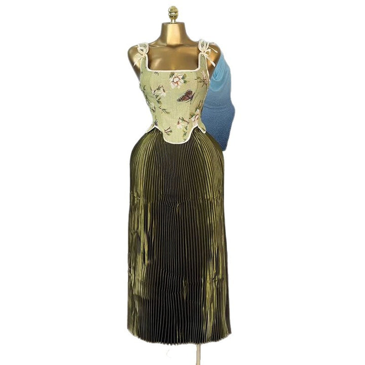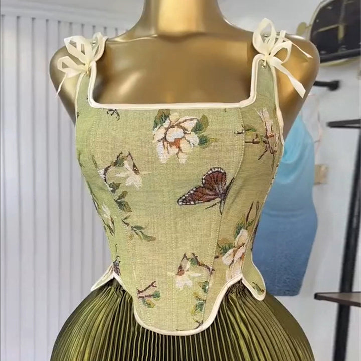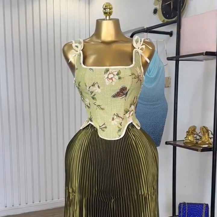 European and American women's clothing 2025 summer new fashion bow irregular top pleated skirt set