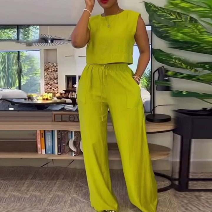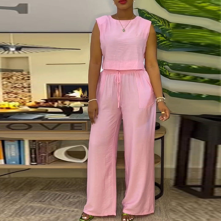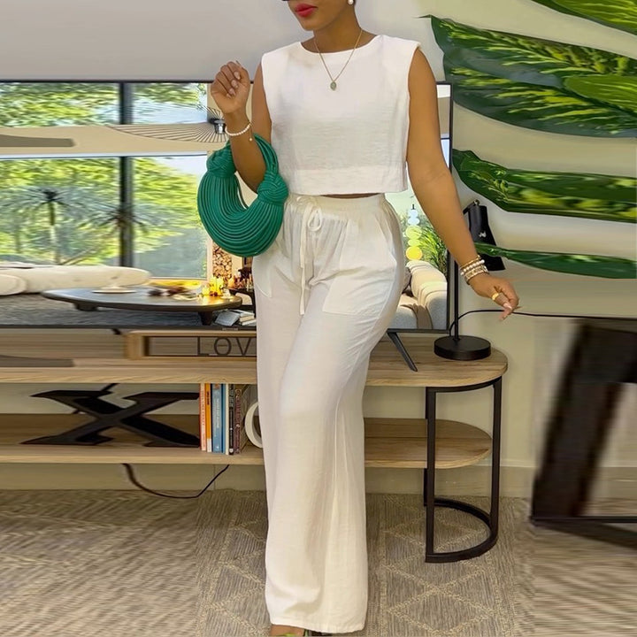 European and American women's clothing 2025 summer new fashion round neck sleeveless top hig...