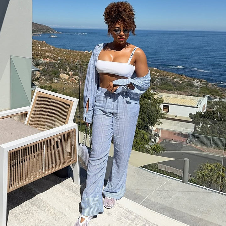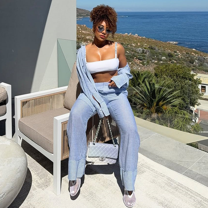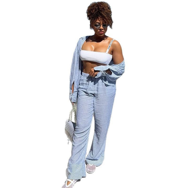 European and American women's clothing 2025 summer new fashion striped loose casual shirt hi...