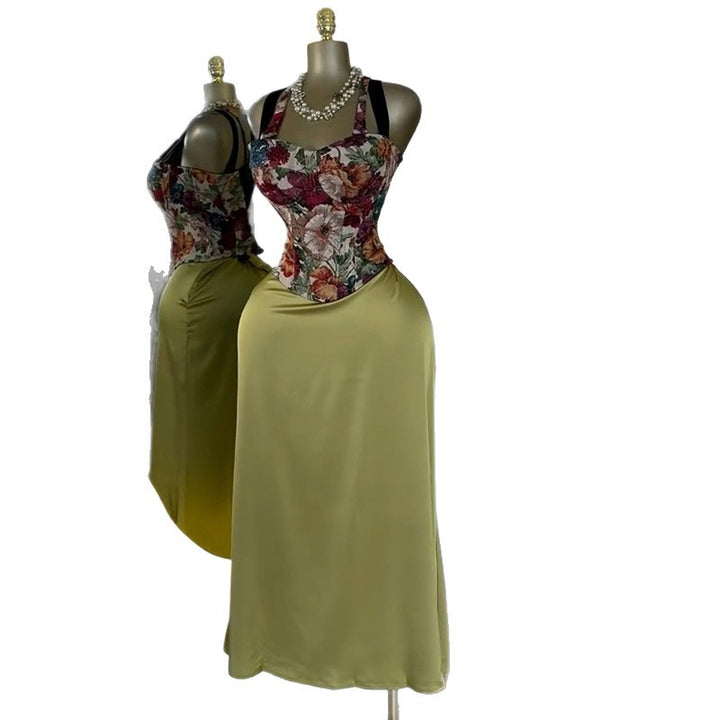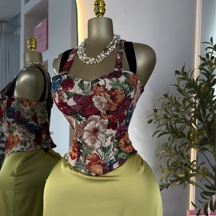 European and American women's clothing 2025 summer new high-end printed fish bone sleeveless...