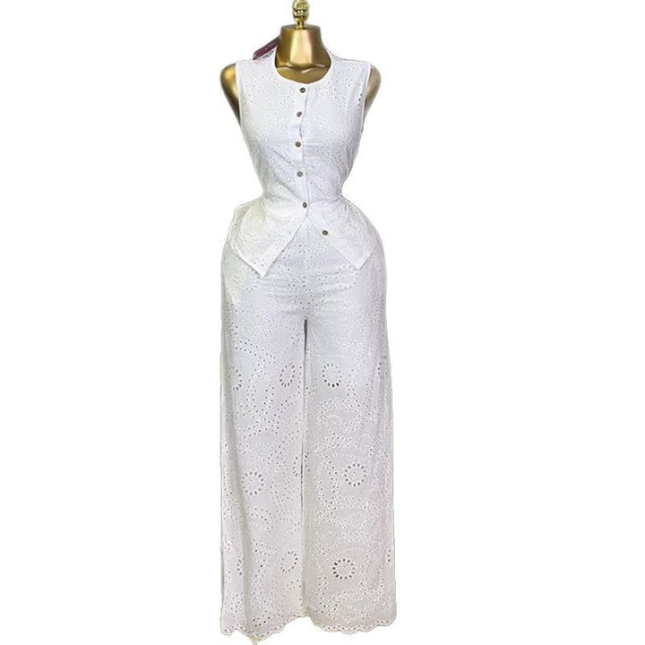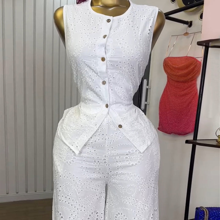 European and American women's clothing 2025 summer new round neck lace hollow sleeveless top...