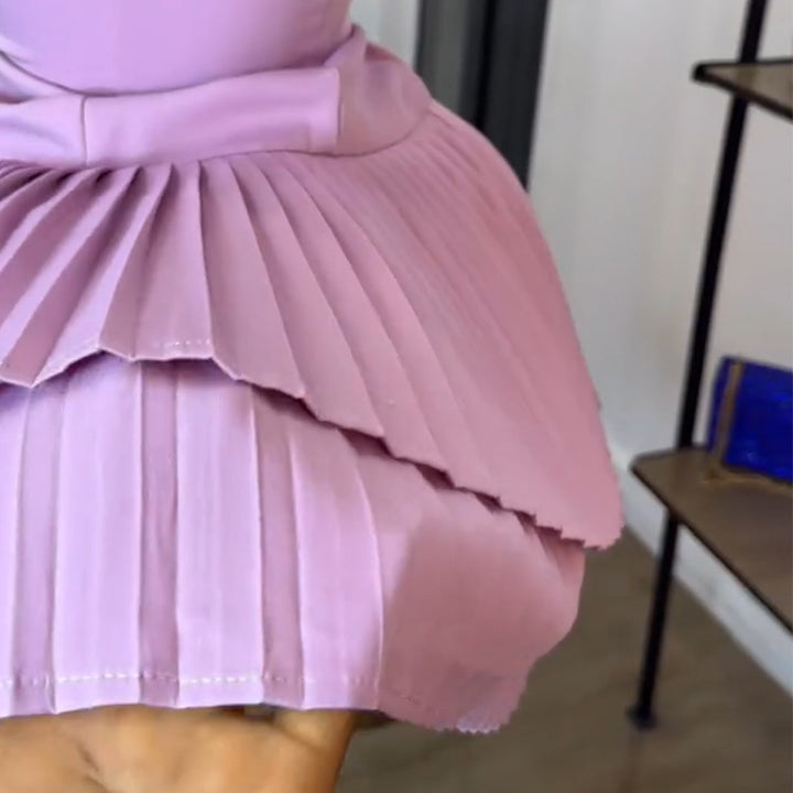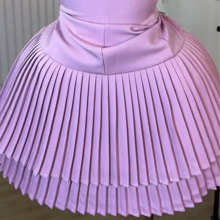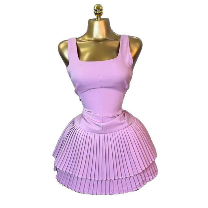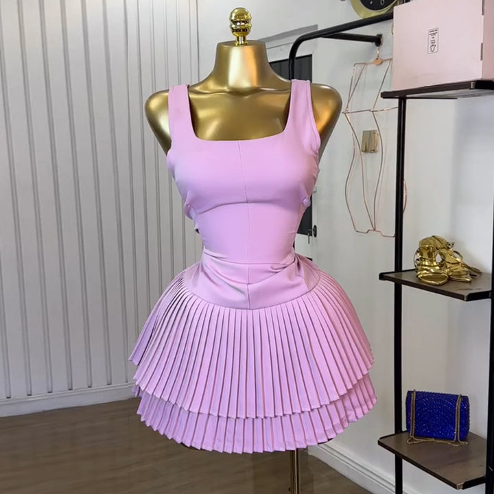 European and American women's clothing 2025 summer new sweet and fresh square collar high waist thin A word pleated skirt dress short skirt