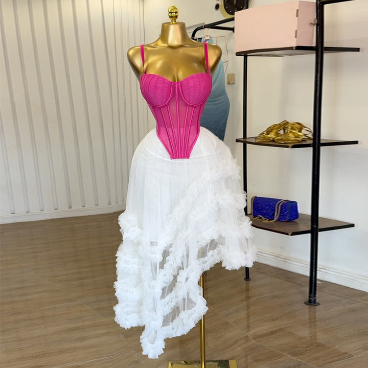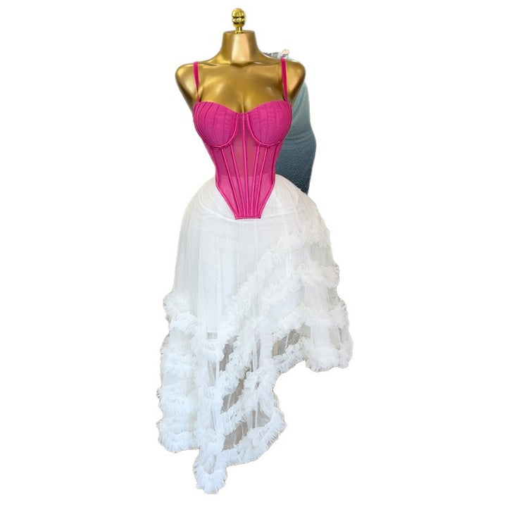 European and American women's clothing 2025 summer new temperament irregular suspender top irregular skirt set
