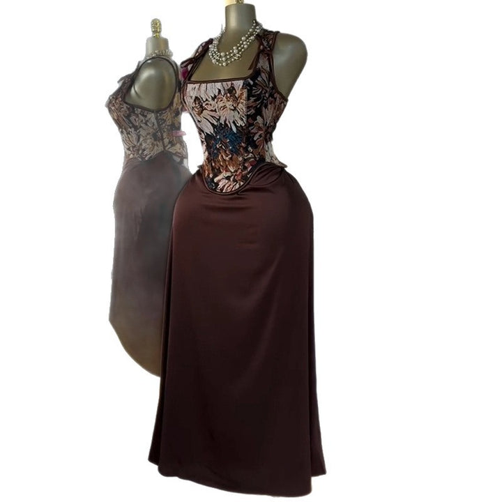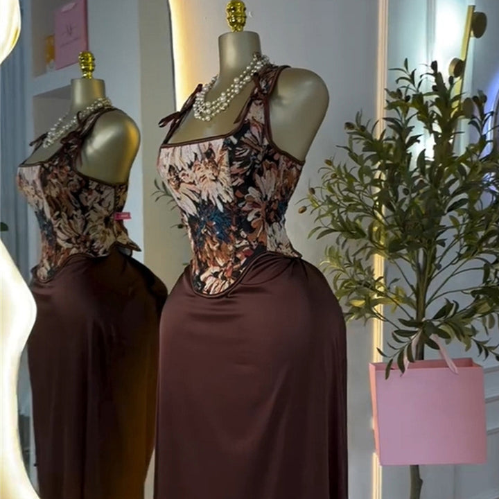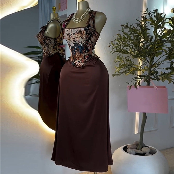 European and American women's clothing 2025 summer new temperament printed bow vest top high waist skirt set