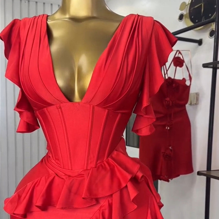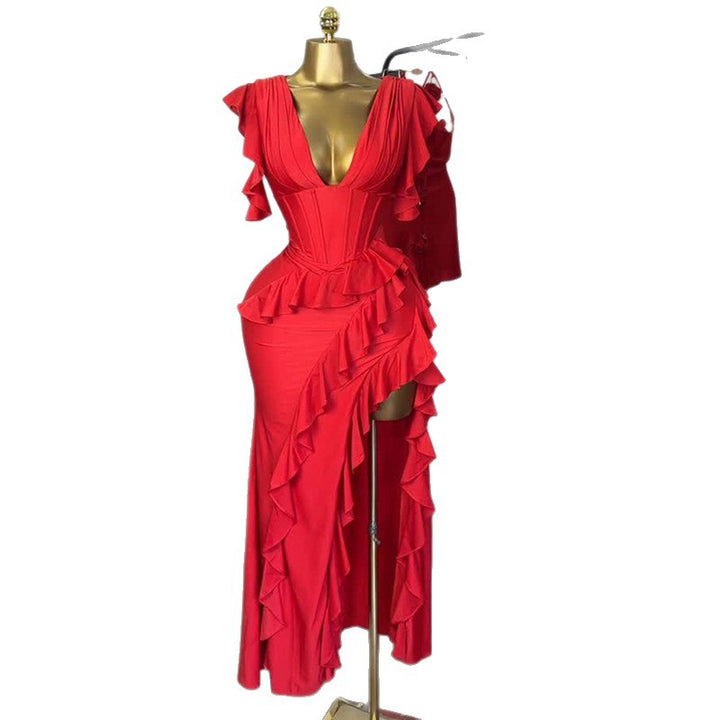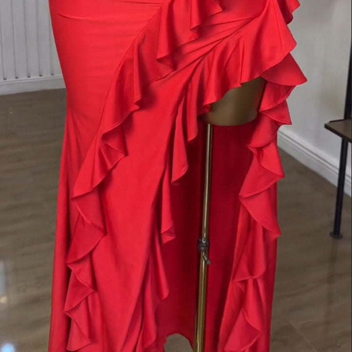 European and American women's clothing 2025 summer new temperament V-neck ruffle edge top irregular skirt set