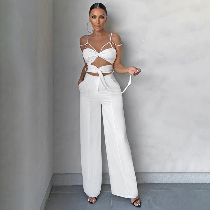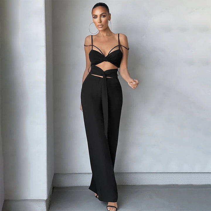 European and American women's clothing fashion black jumpsuit women's high-end drape wide-leg jumpsuit women's sleeveless belt