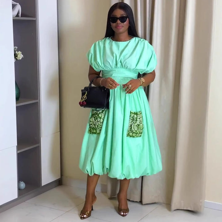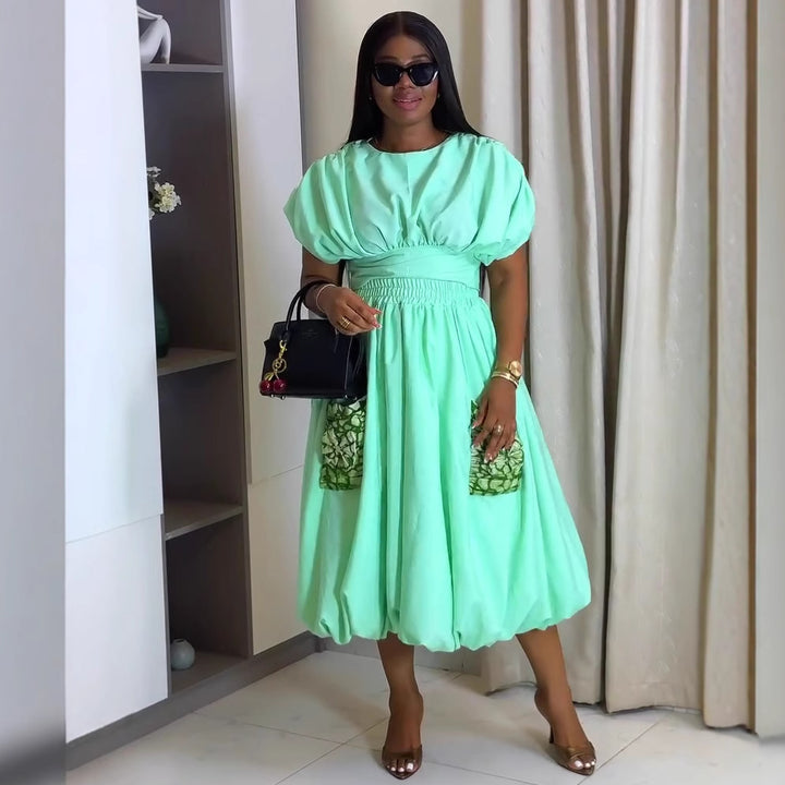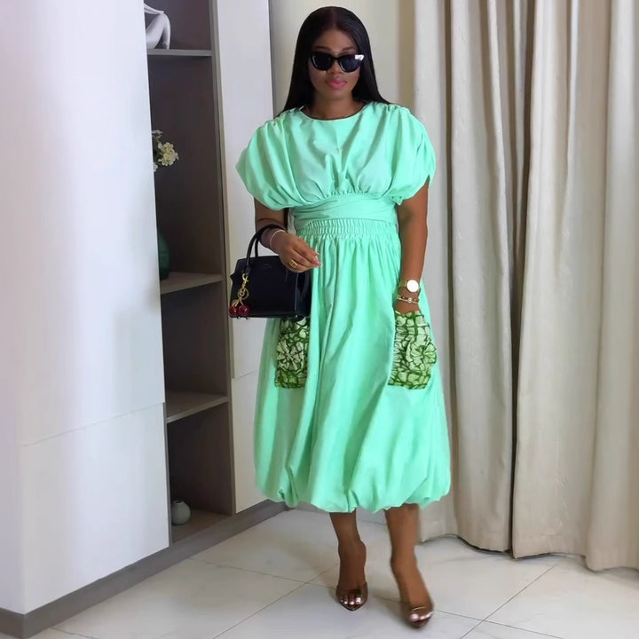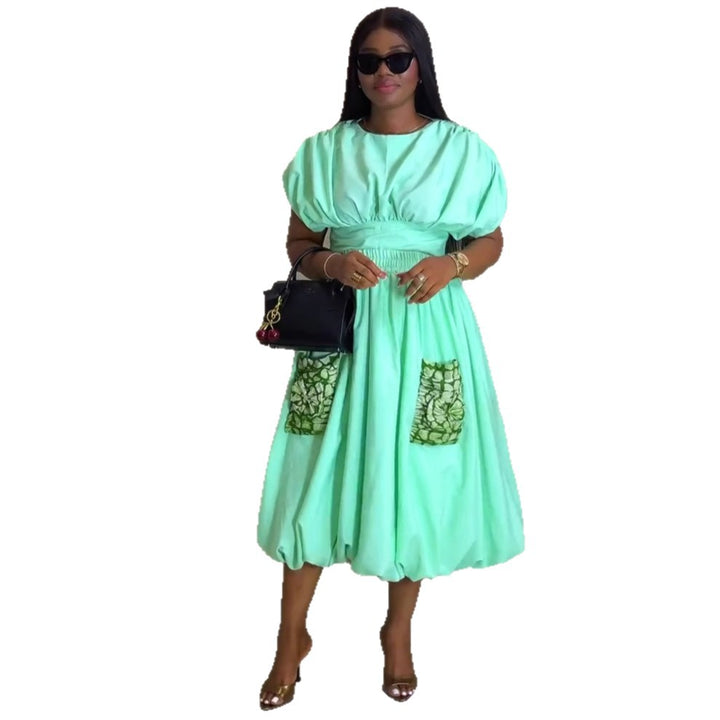 European and American women's clothing, foreign style pleated design, waist and thin short top, African women's large pocket skirt set