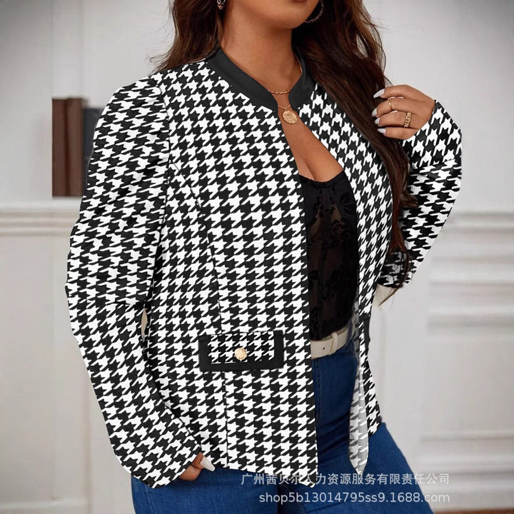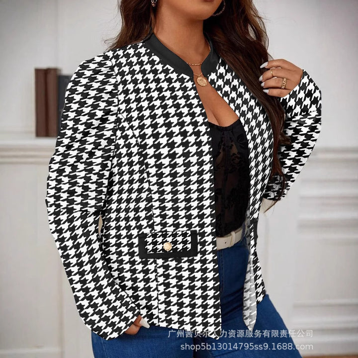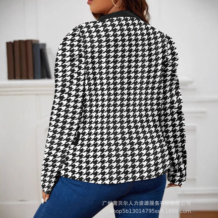 European and American women's clothing large size bubble sleeves thousand bird grid short jacket LPU4225