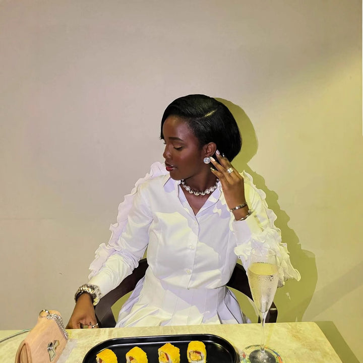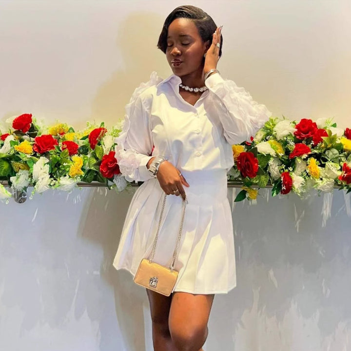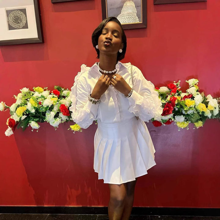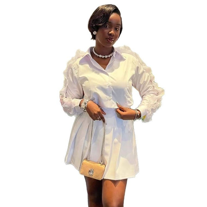 European and American women's clothing light and mature style elegant design sense three-dimensional flower long-sleeved shirt African pleated skir...