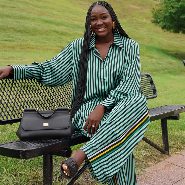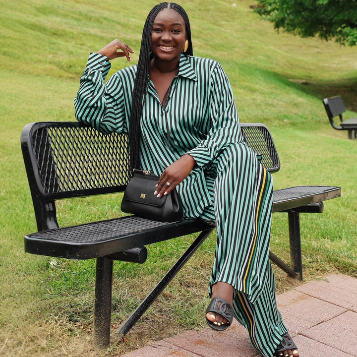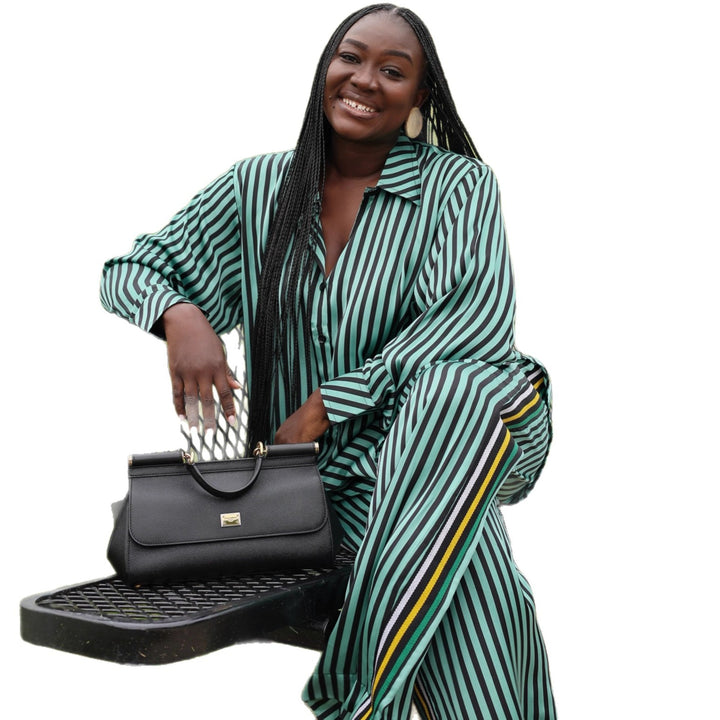 European and American women's clothing long-sleeved striped lapel large-size shirt casual trousers African new two-piece fashion suit women