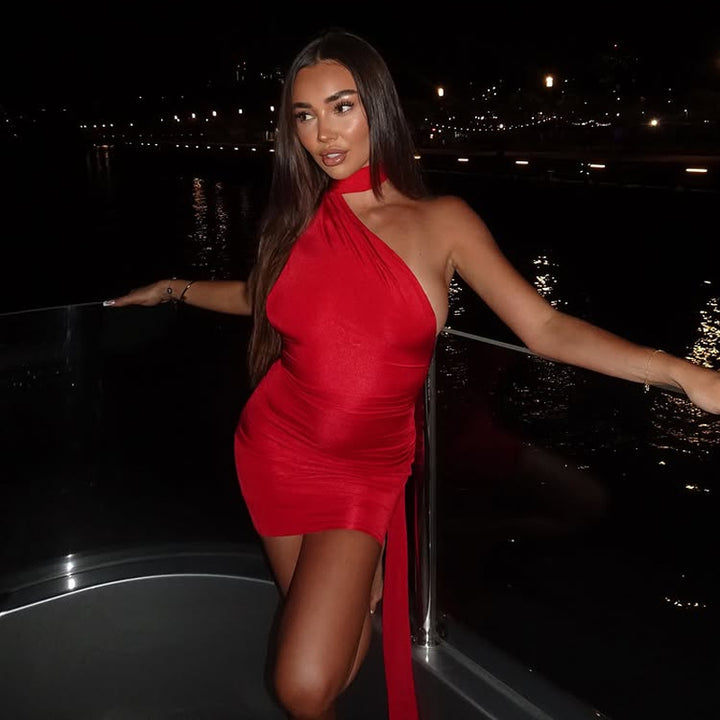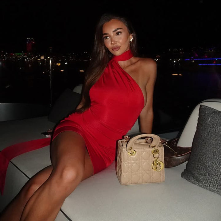 European and American women's clothing new pure desire sexy backless streamer hanging neck fashion hip dress women 5067