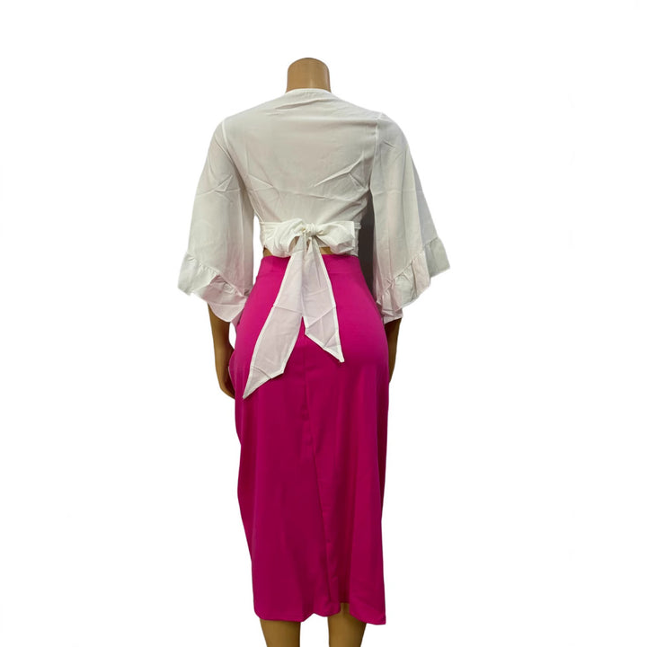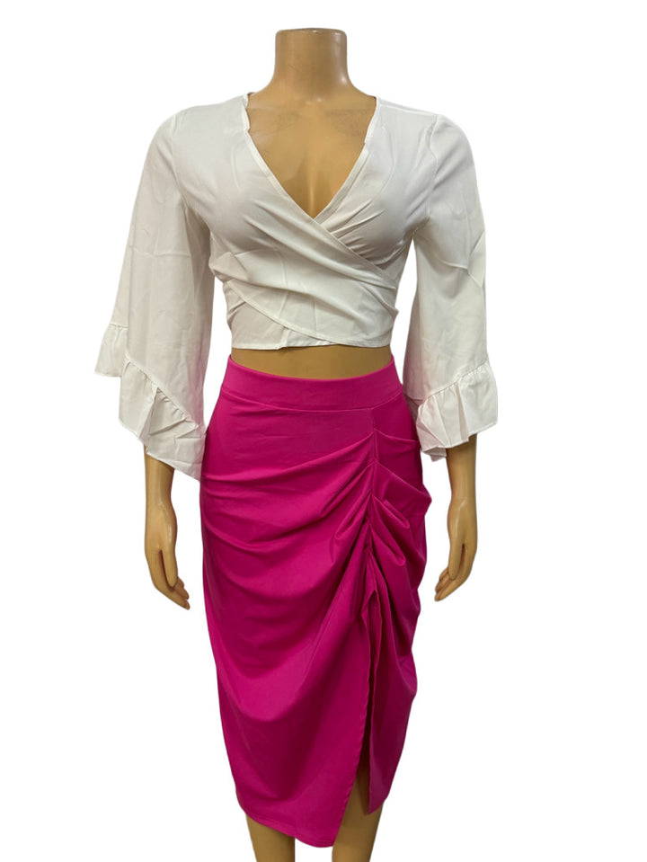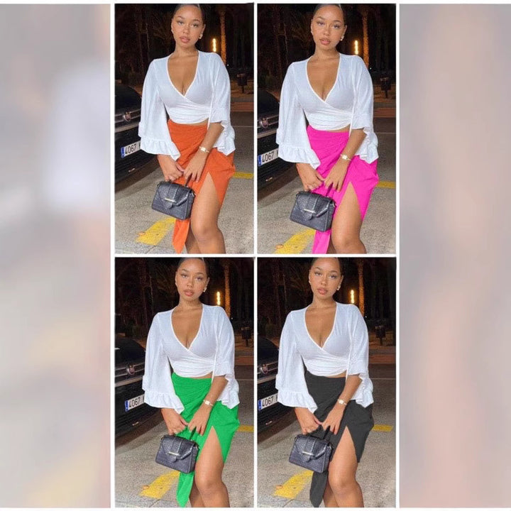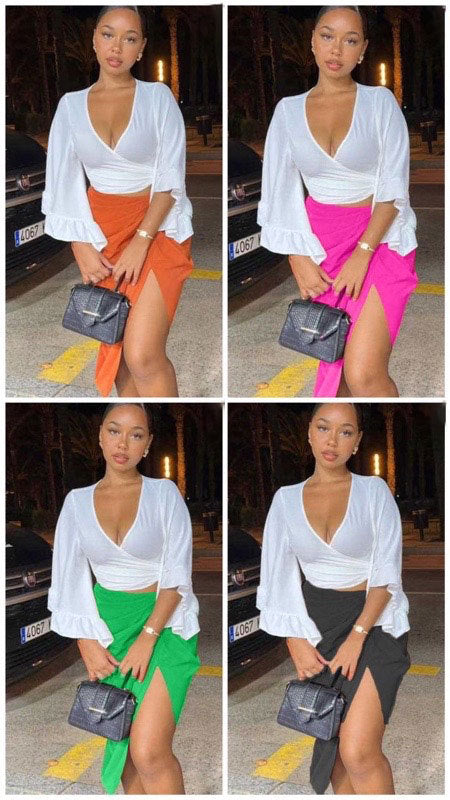 European and American women's clothing new straps, off-the-button ruffle edge top, irregular pleated skirt set