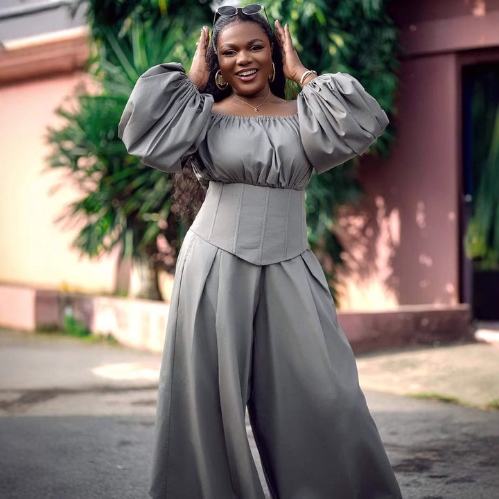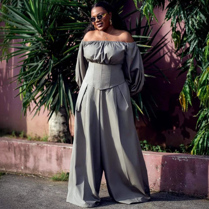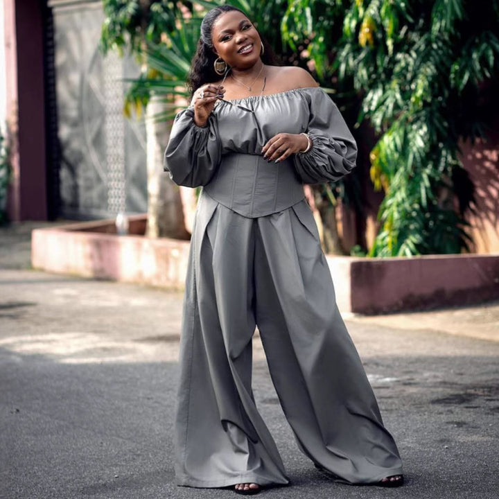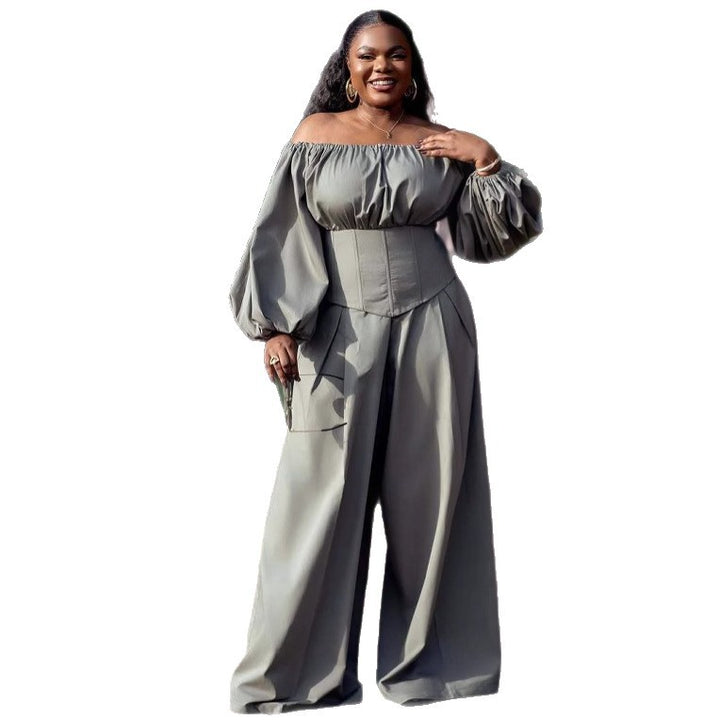 European and American women's clothing one-word shoulder long sleeves waist thin top women's ...