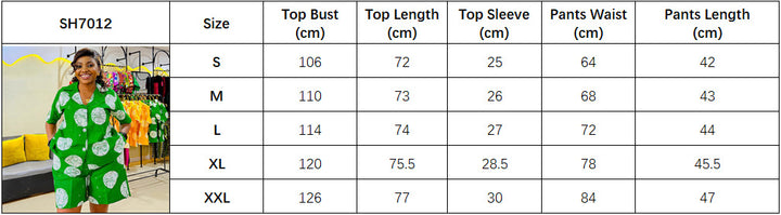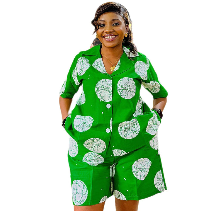 European and American women's clothing printed short-sleeved lapel cardigan shirt casual shorts women's African foreign style fashion large size tw...