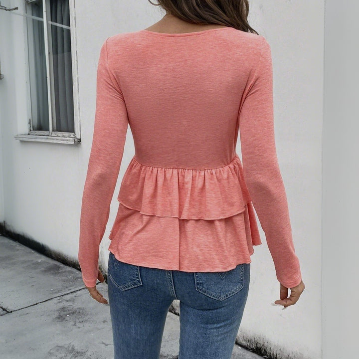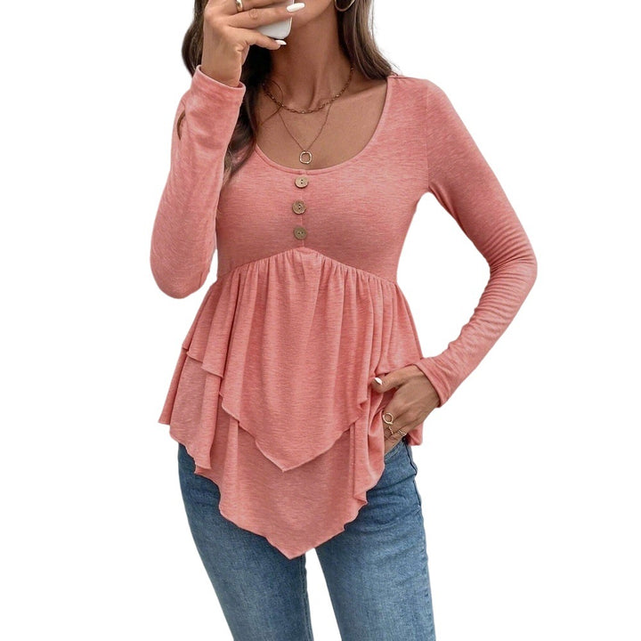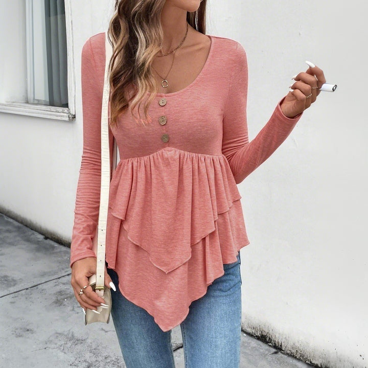 European and American women's clothing simple casual T-shirt 2024 autumn and winter new thin ...