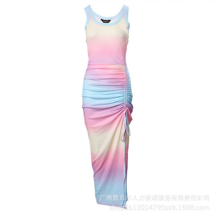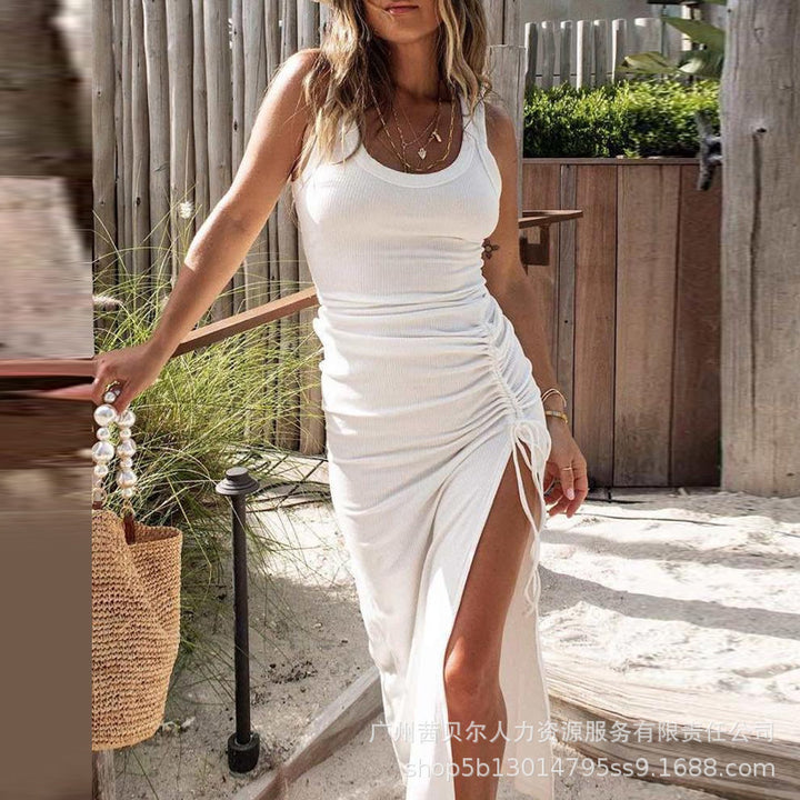European and American women's clothing solid color sleeveless pit strip drawstring casual skirt ODL1401 series