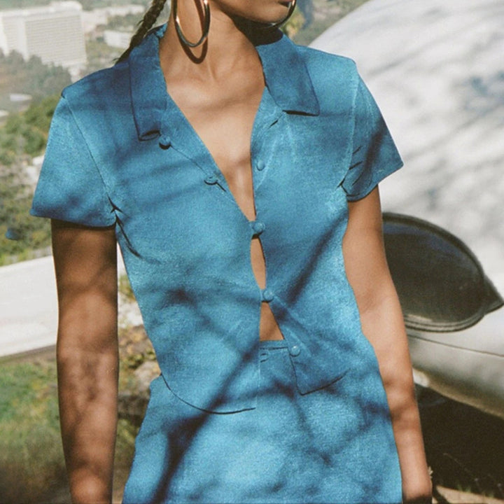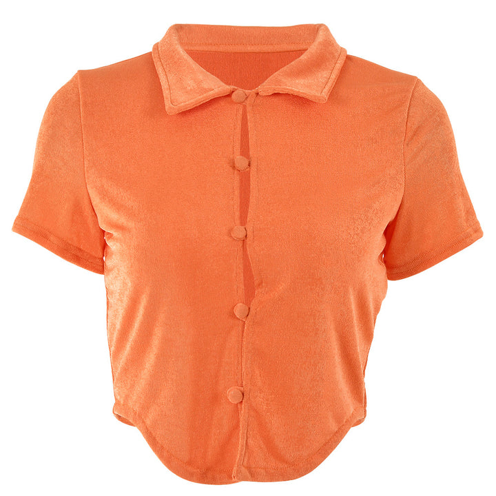 European and American women's clothing Spice Girls new retro cardigan summer solid color doub...
