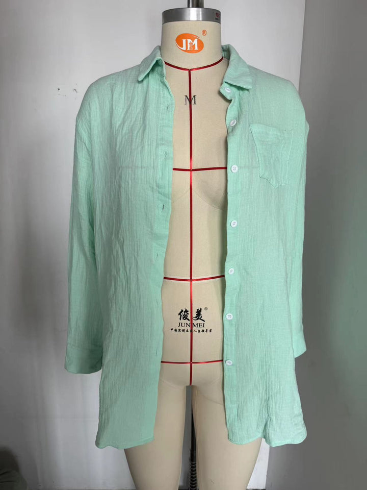 European and American women's clothing spring and summer 2024 new beach blouse wrinkled cloth casual shirt