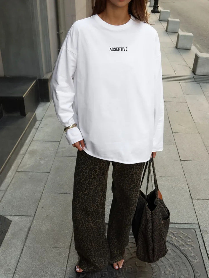 European and American women's clothing spring and summer loose solid color Oversize round ne...