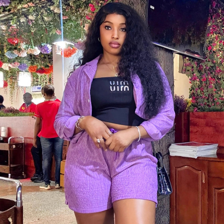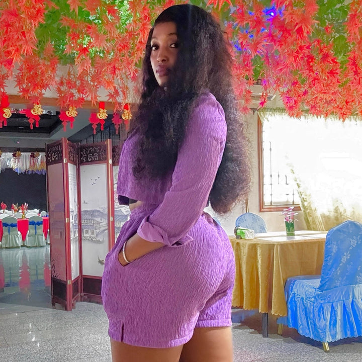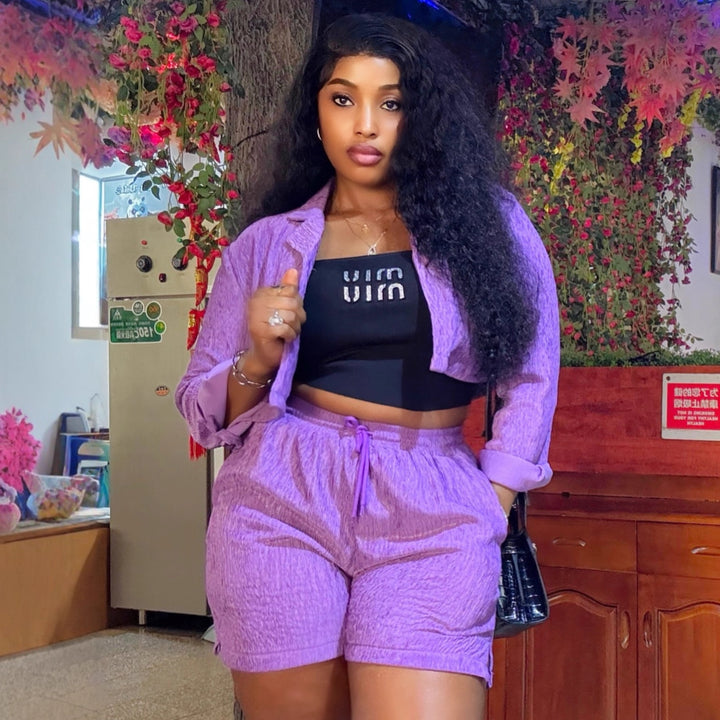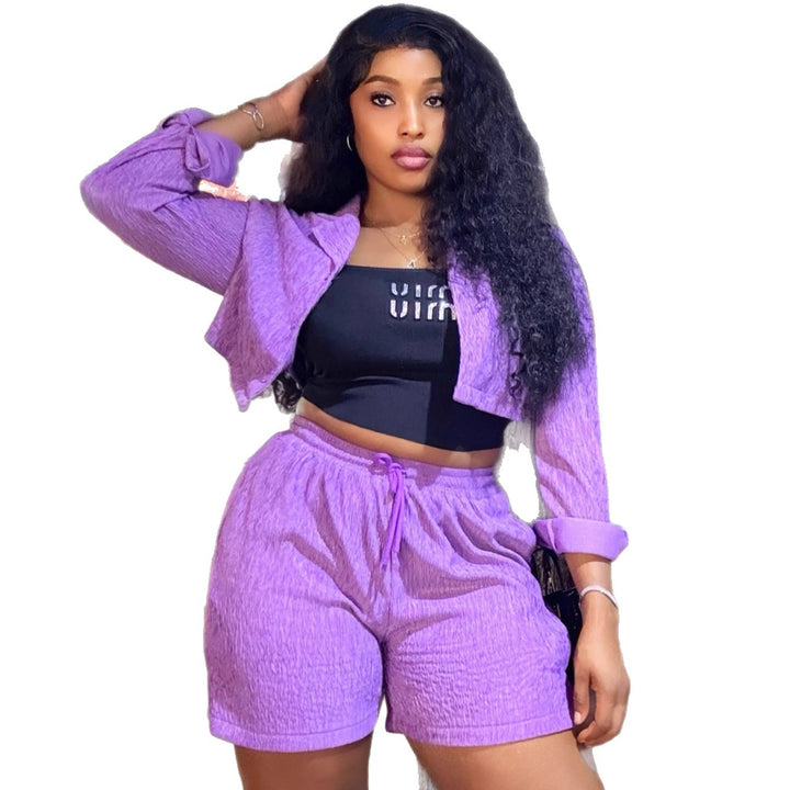 European and American women's clothing suit solid color long-sleeved lapel short shirt women's African casual shorts fashion temperament two-piece set