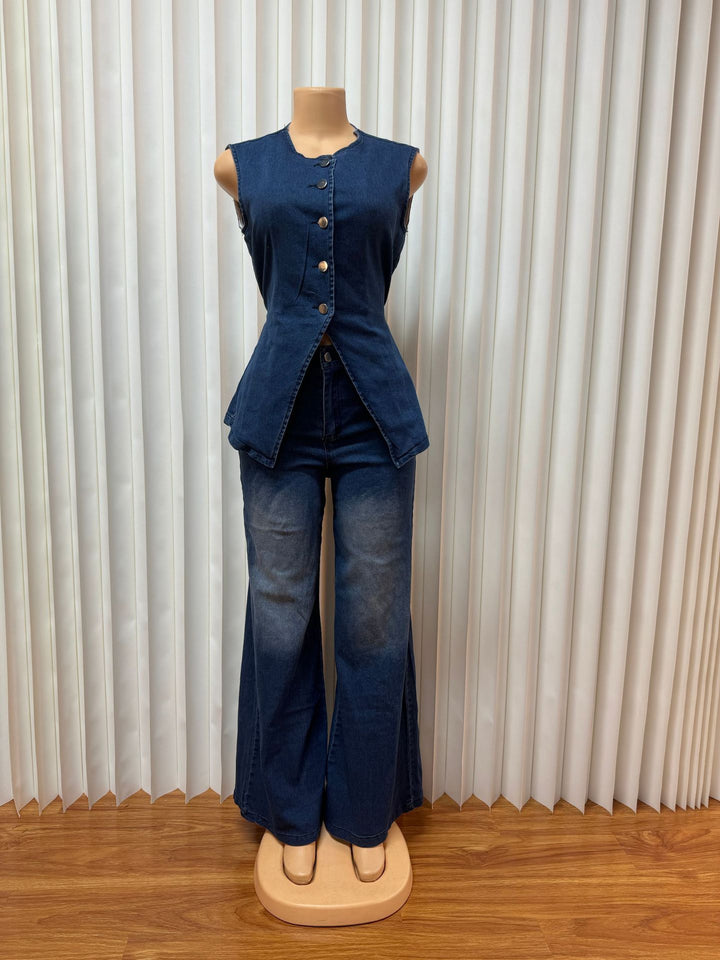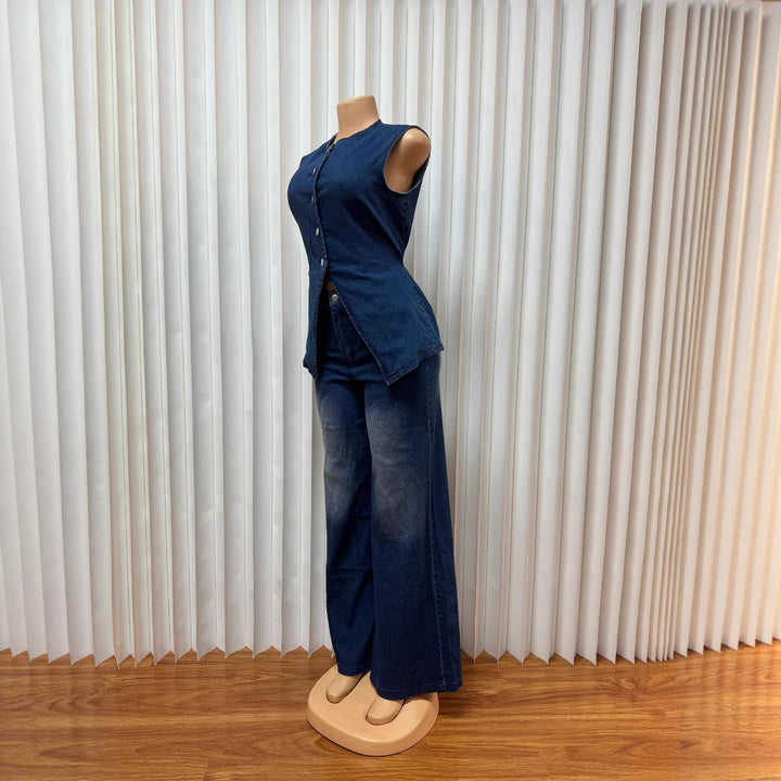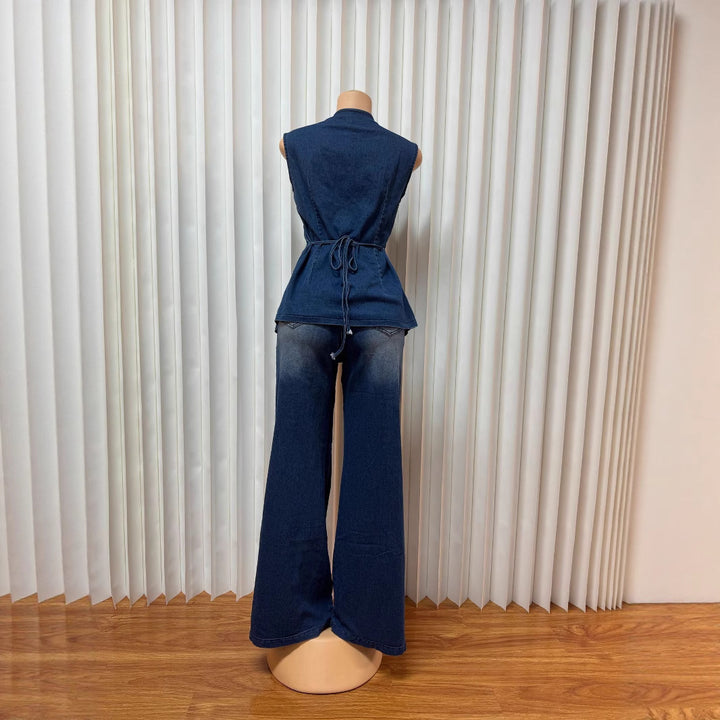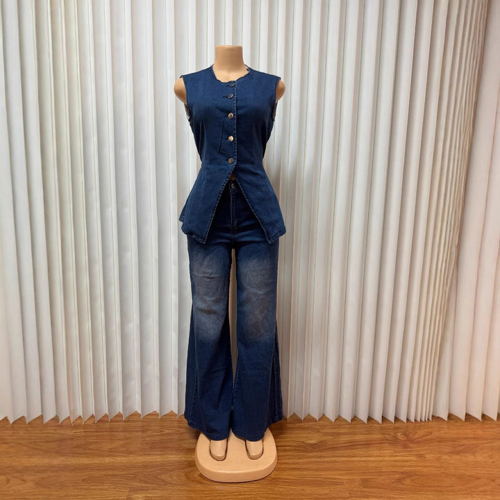 European and American women's clothing washed new temperament sleeveless casual denim trousers set