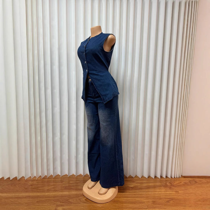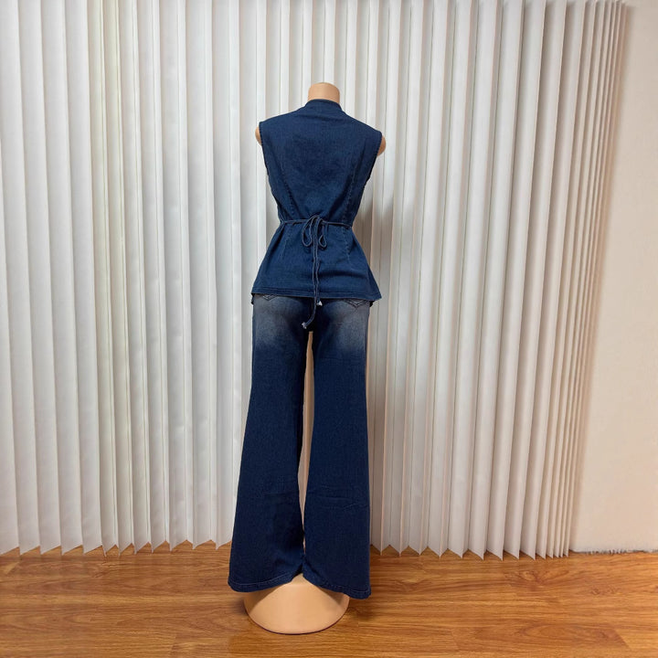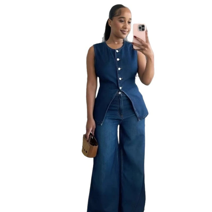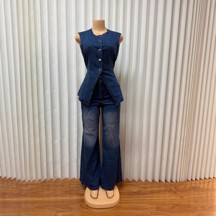 European and American women's clothing washed new temperament sleeveless casual denim trousers set