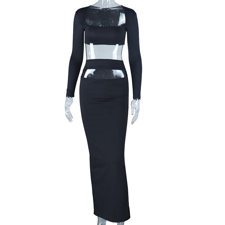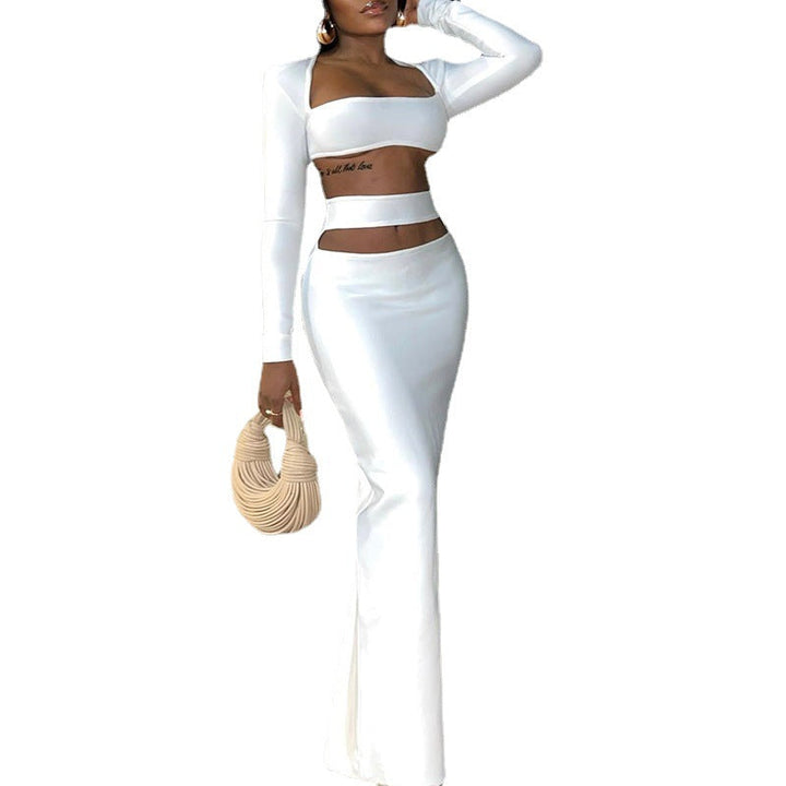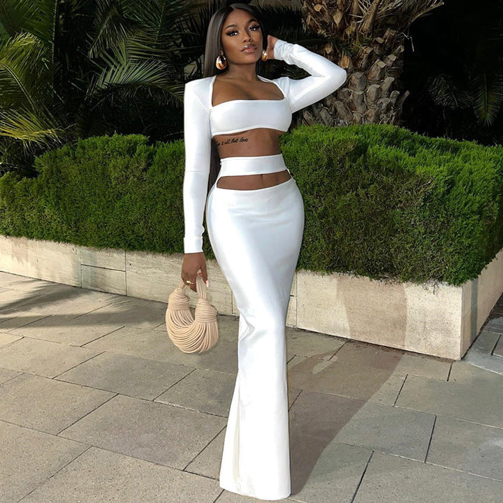 European Station Foreign Trade Cross-border Women's New Supply Solid Color Fashion Temperament Top Long Sleeve Skirt Set Two-piece Set