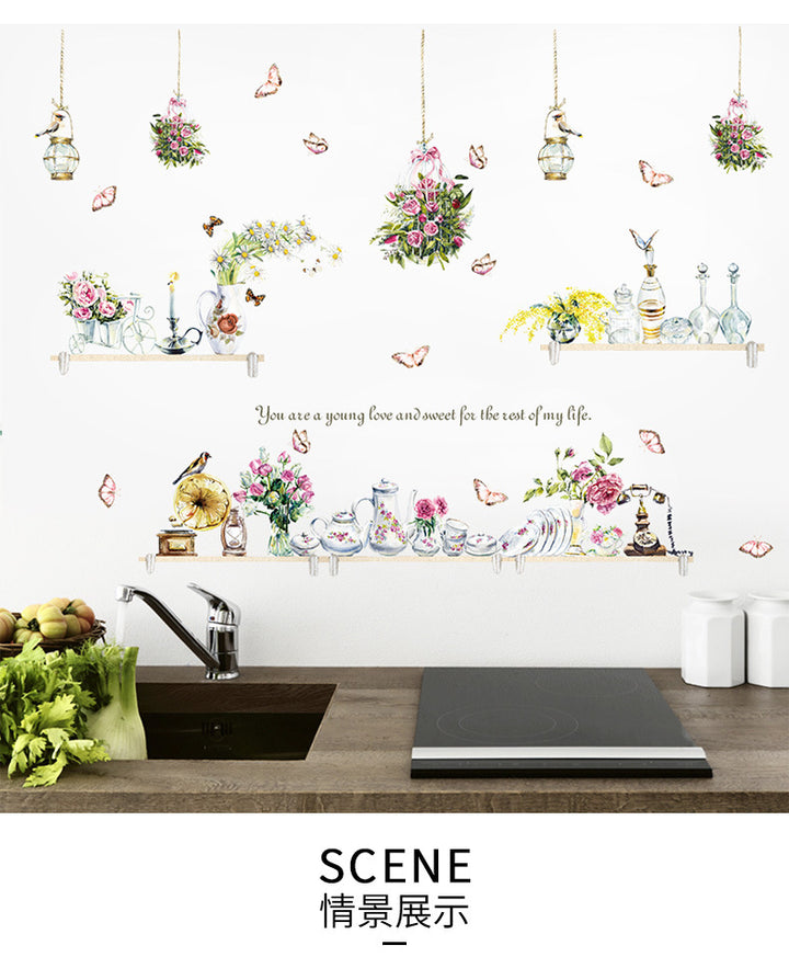 European tableware hanging basket decorative sticker kitchen refrigerator restaurant bar background decorative sticker wall sticker HM92068