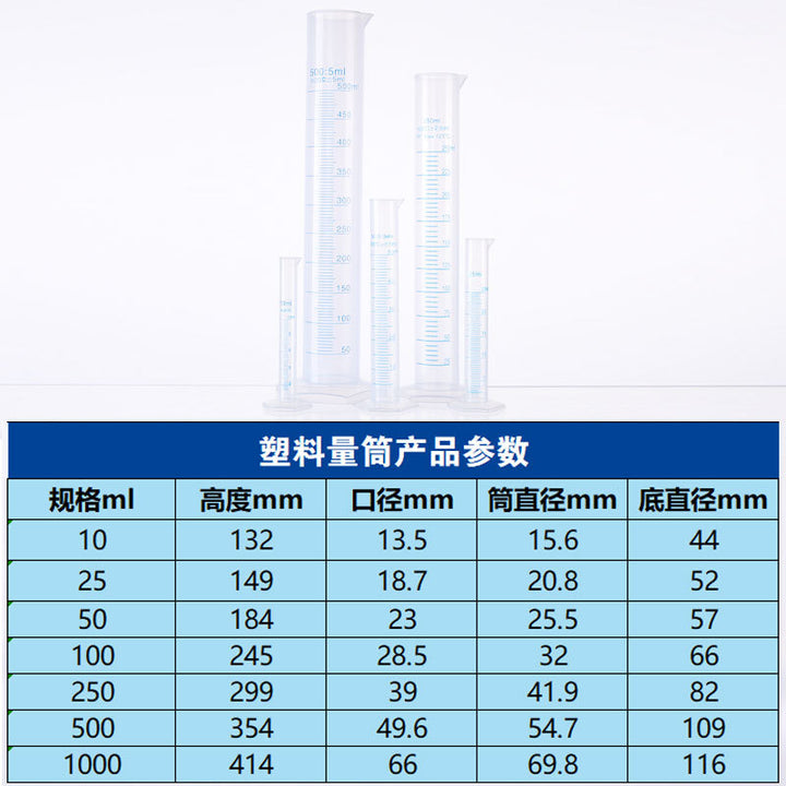 Plastic measuring cylinder 10ml (blue and white line), Plastic measuring cylinder 25ml (blue and white line), Plastic measuring cylinder 50ml (blue and white line), Plastic measuring cylinder 100ml (blue and white line), Plastic measuring cylinder 250ml (blue and white line), Plastic measuring cylinder 500ml (blue and white line), Plastic measuring cylinder 1000ml (blue and white line), Plastic measuring cylinder 5ml (white line), Plastic measuring cylinder 10ml (white line), Plastic measuring cylinder 25ml (white line), Plastic measuring cylinder 50ml (white line), Plastic measuring cylinder 100ml (white line), Plastic measuring cylinder 250ml (white line), Plastic measuring cylinder 500ml (white line), Plastic measuring cylinder 1000ml (white line) |