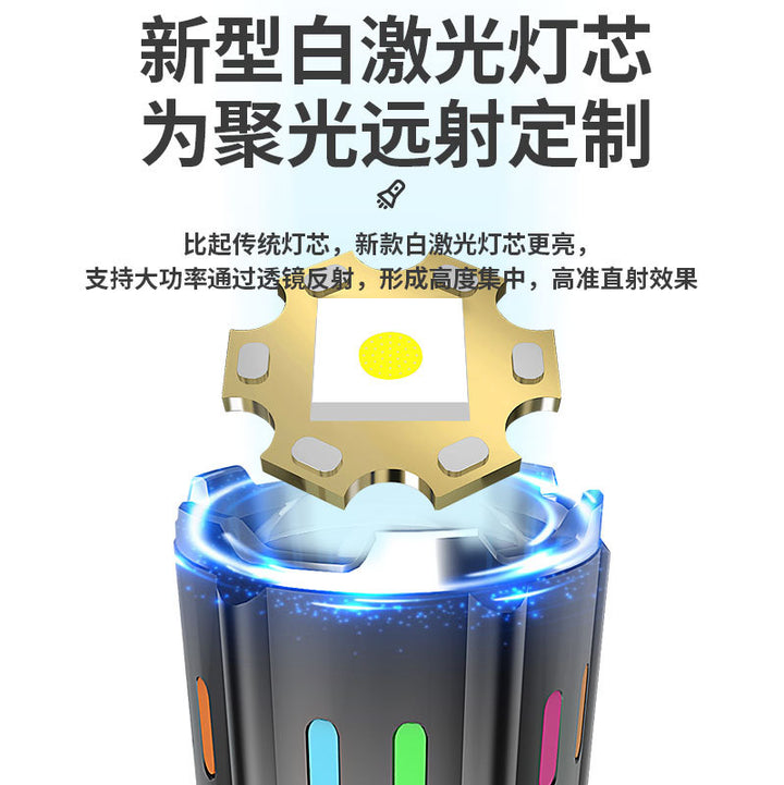 Explosive white laser aluminum alloy flashlight fluorescent strip zoom flashlight outdoor multi-speed dimming emergency flashlight