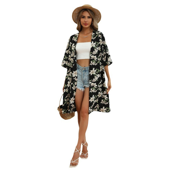 export summer new seaside short-sleeved printed sunscreen European and American beach blouse holiday style