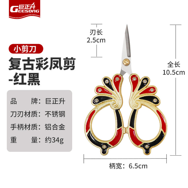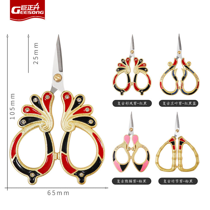 Exquisite small scissors sewing thread scissors head tea tip stainless steel office dragon and phoenix handmade special gold scissors wholesale