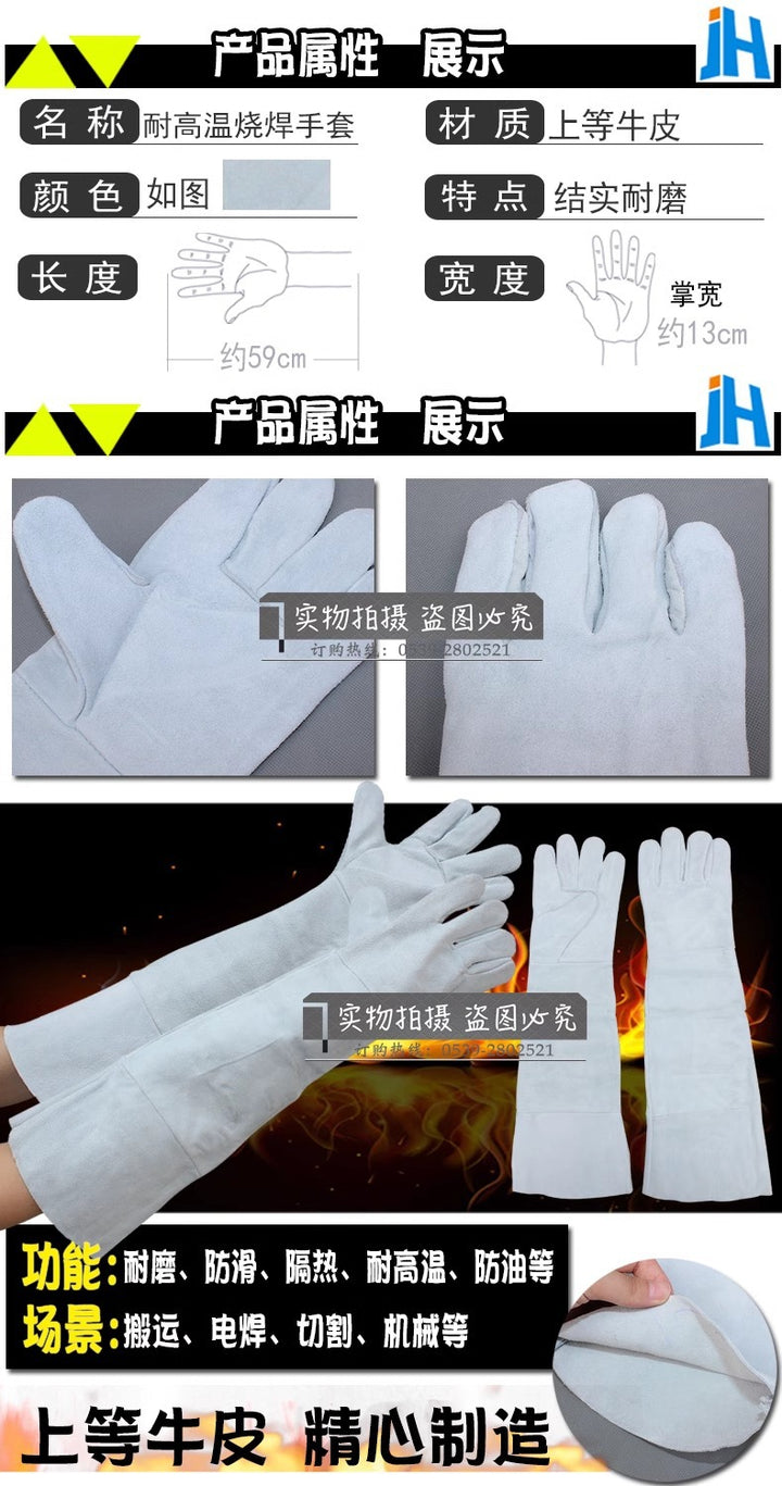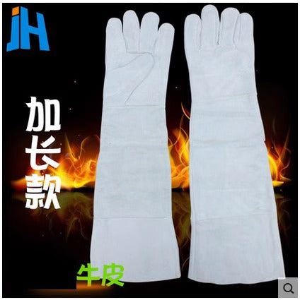 Extended natural cowhide welding gloves Welder anti-scalding welding Durable Durable wear-resistant protective gloves 59cm