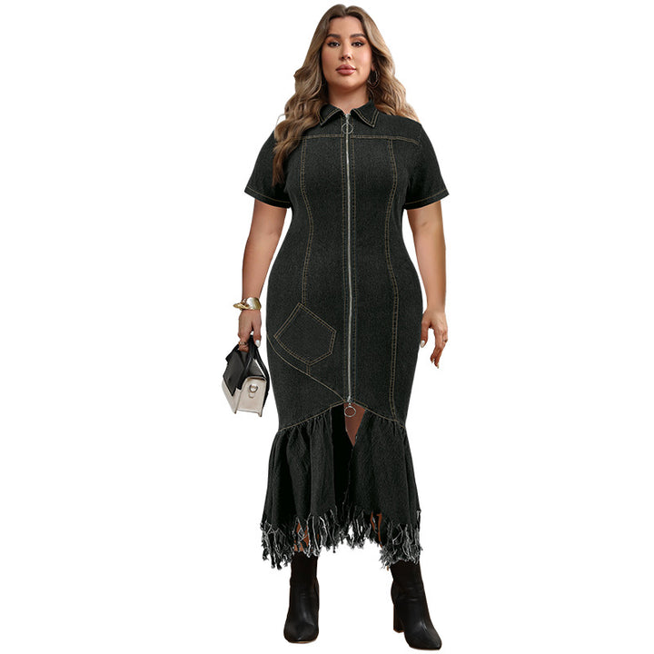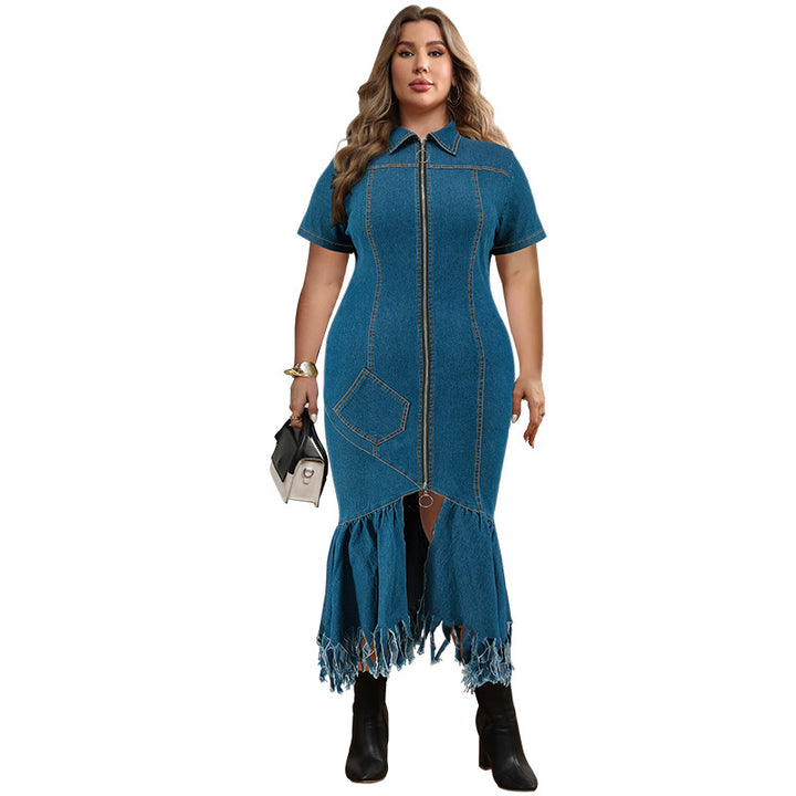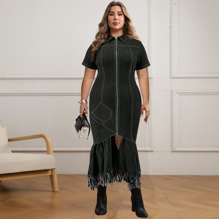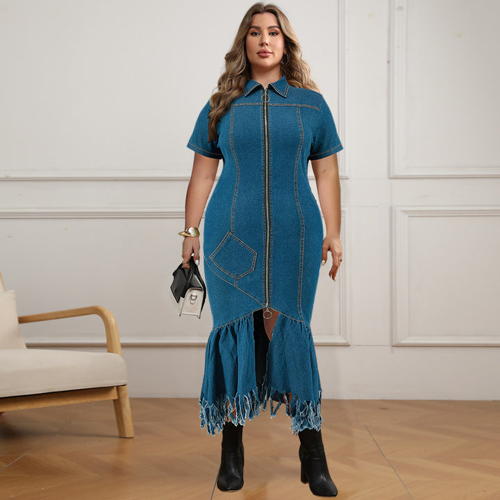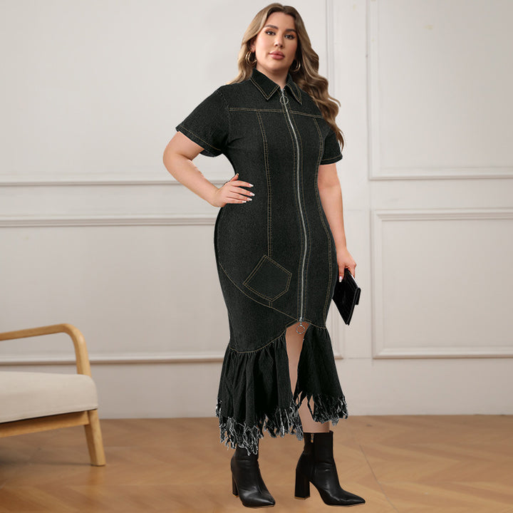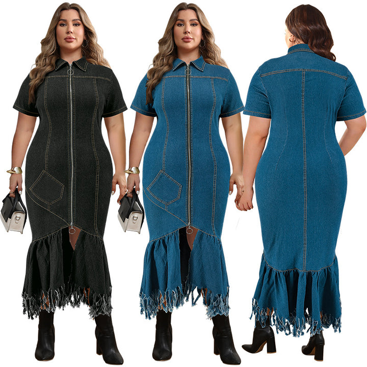 F218353 European and American elegant wind large size women's denim dress new product source manufacturer direct